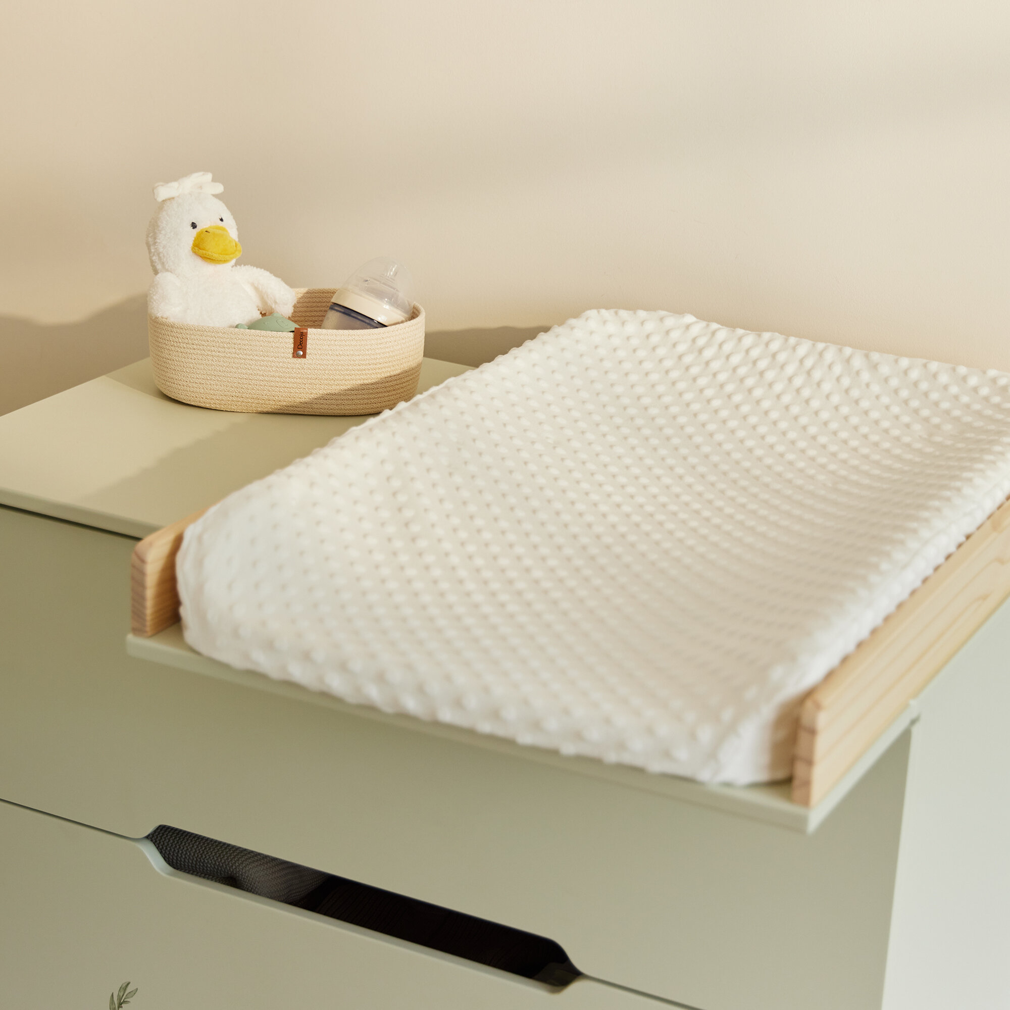 91036, Комод FIOKI с пеленальным столиком, деревянный, ножки из натурального массива березы, 3 ящика, 90,2х53,5х94,5 см, молочный