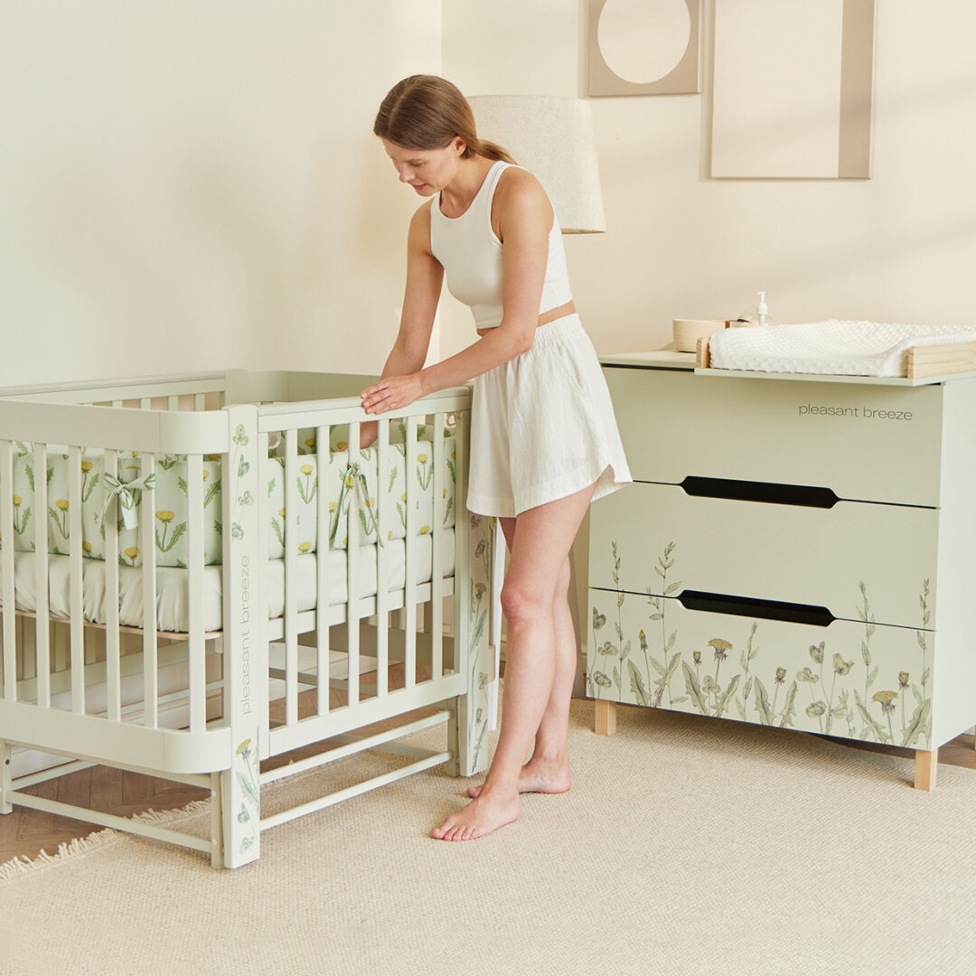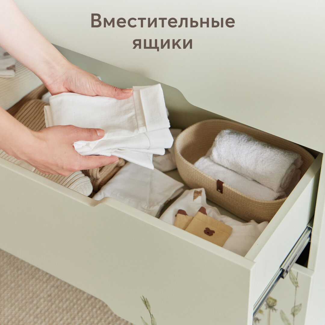 Сохранить91036, Комод FIOKI с пеленальным столиком, деревянный, ножки из массива березы, 3 ящика, 90,2х53,5х94,5 см, зеленый интересное: