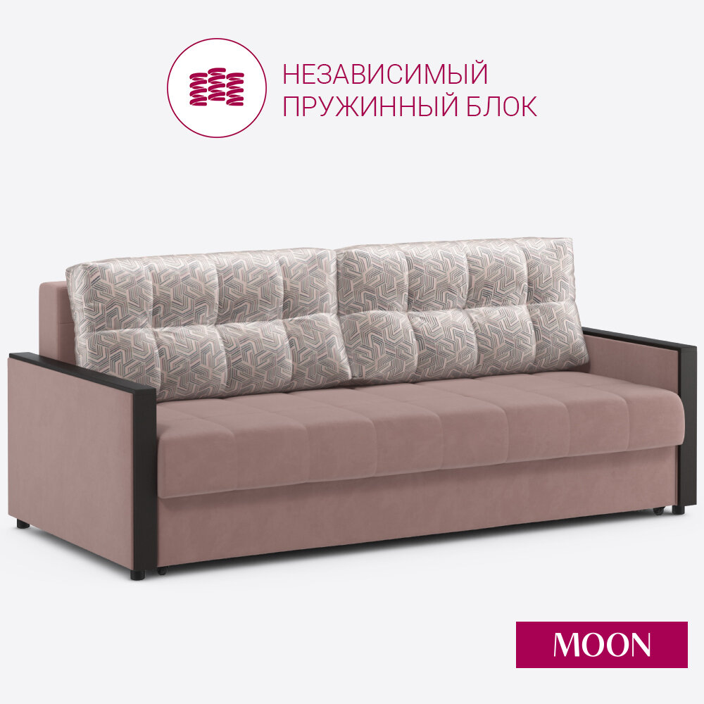 Купить Диван-кровать раскладной еврокнижка MOON FAMILY 135 велюр розовый , Независимый пружинный блок , 219х107х92 см