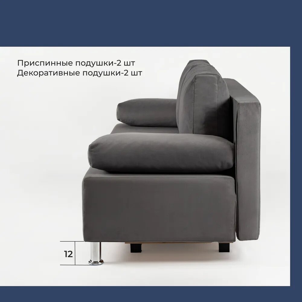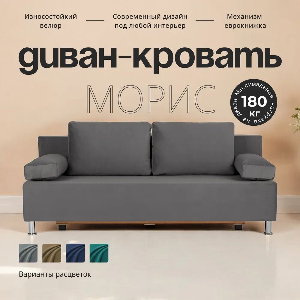 Диван прямой "Морис" серый, велюр, двуспальный, Еврокнижка, Диван 24 интересное: