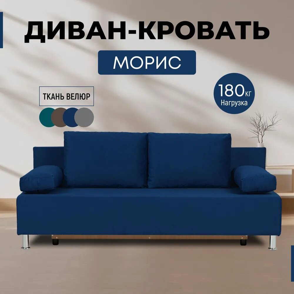 Диван-кровать "Морис" синий, велюр, двуспальный, Еврокнижка, Диван 24 интересное: