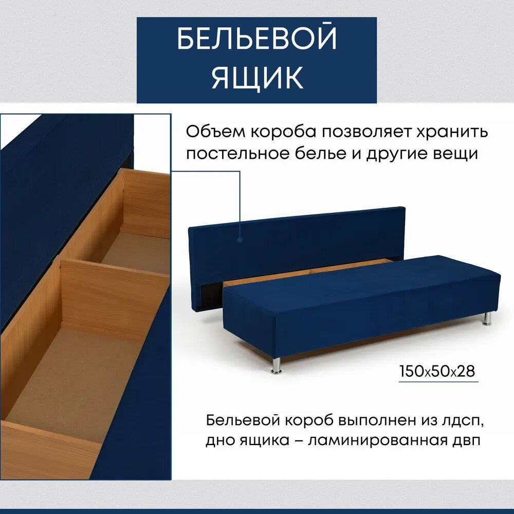 | Особенности | антивандальная обивка, без подлокотников, раскладная конструкция, съемные подушки, ящик для белья |