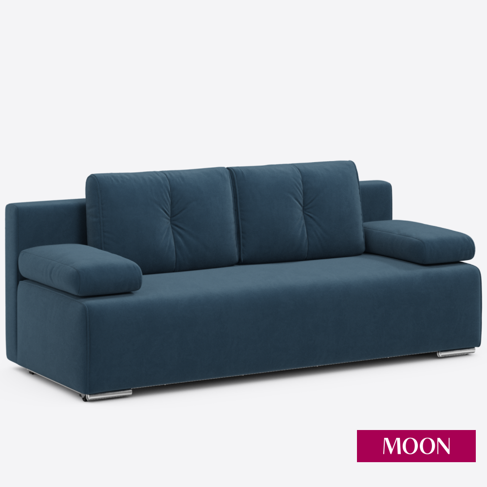 Купить Диван-кровать прямой, еврокнижка, MOON FAMILY 043, велюр синий, 205х91х88 см . Эксклюзивная пена UniqFoam
