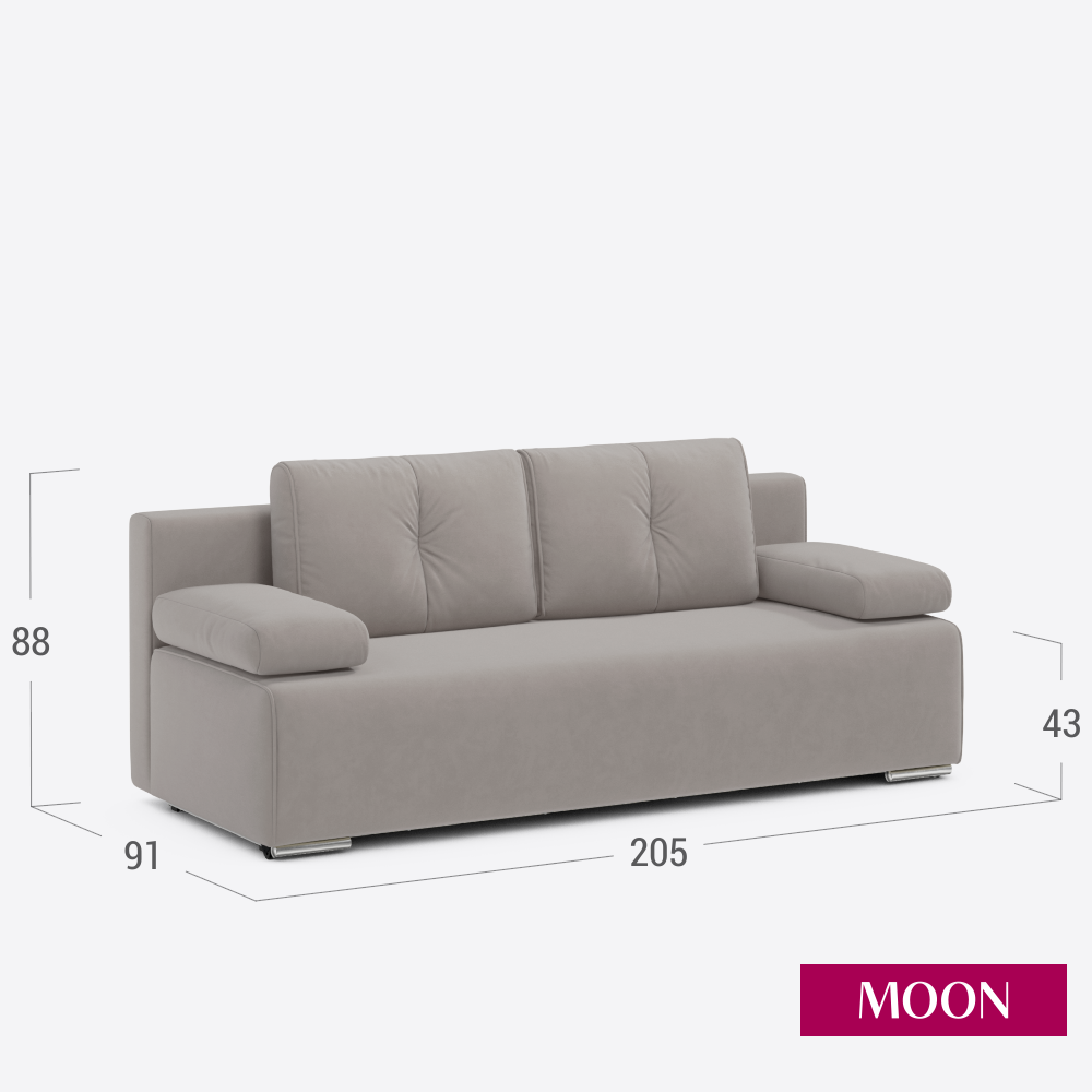 Купить Диван-кровать прямой, еврокнижка, MOON FAMILY 043, велюр бежевый, 205х91х88 см . Эксклюзивная пена UniqFoam