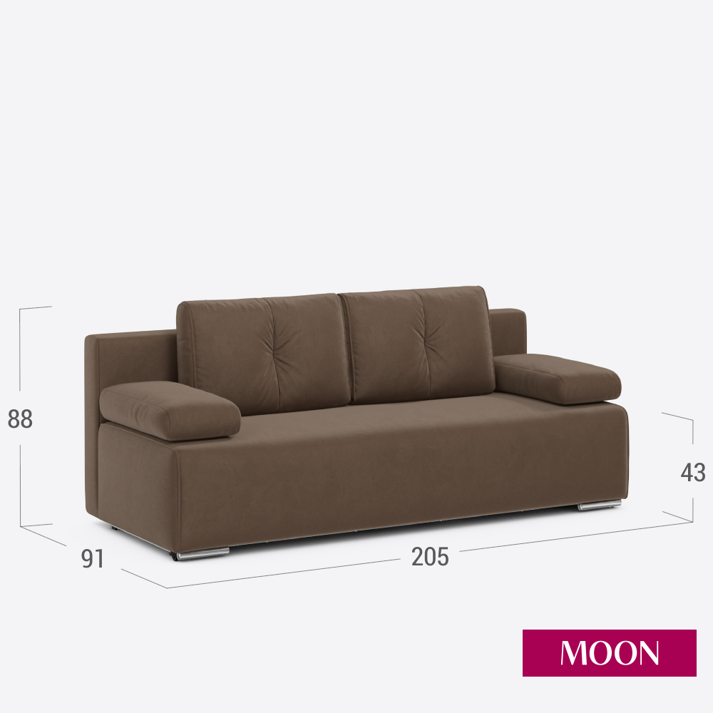 Купить Диван-кровать прямой, еврокнижка, MOON FAMILY 043, велюр коричневый, 205х91х88 см . Эксклюзивная пена UniqFoam