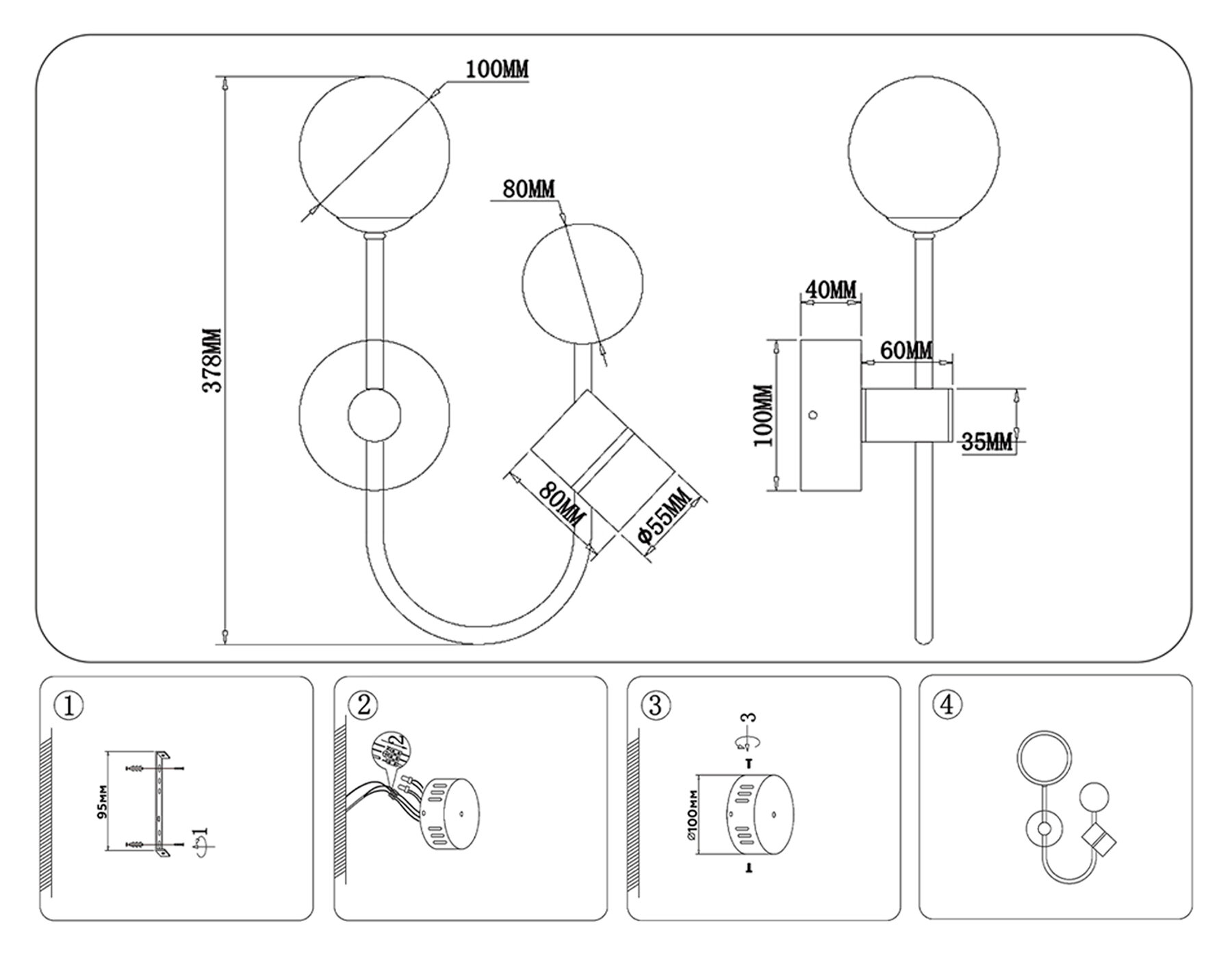| Комплектация | Настенный светильник со сменной лампой (лампочка в комплект не входит) |