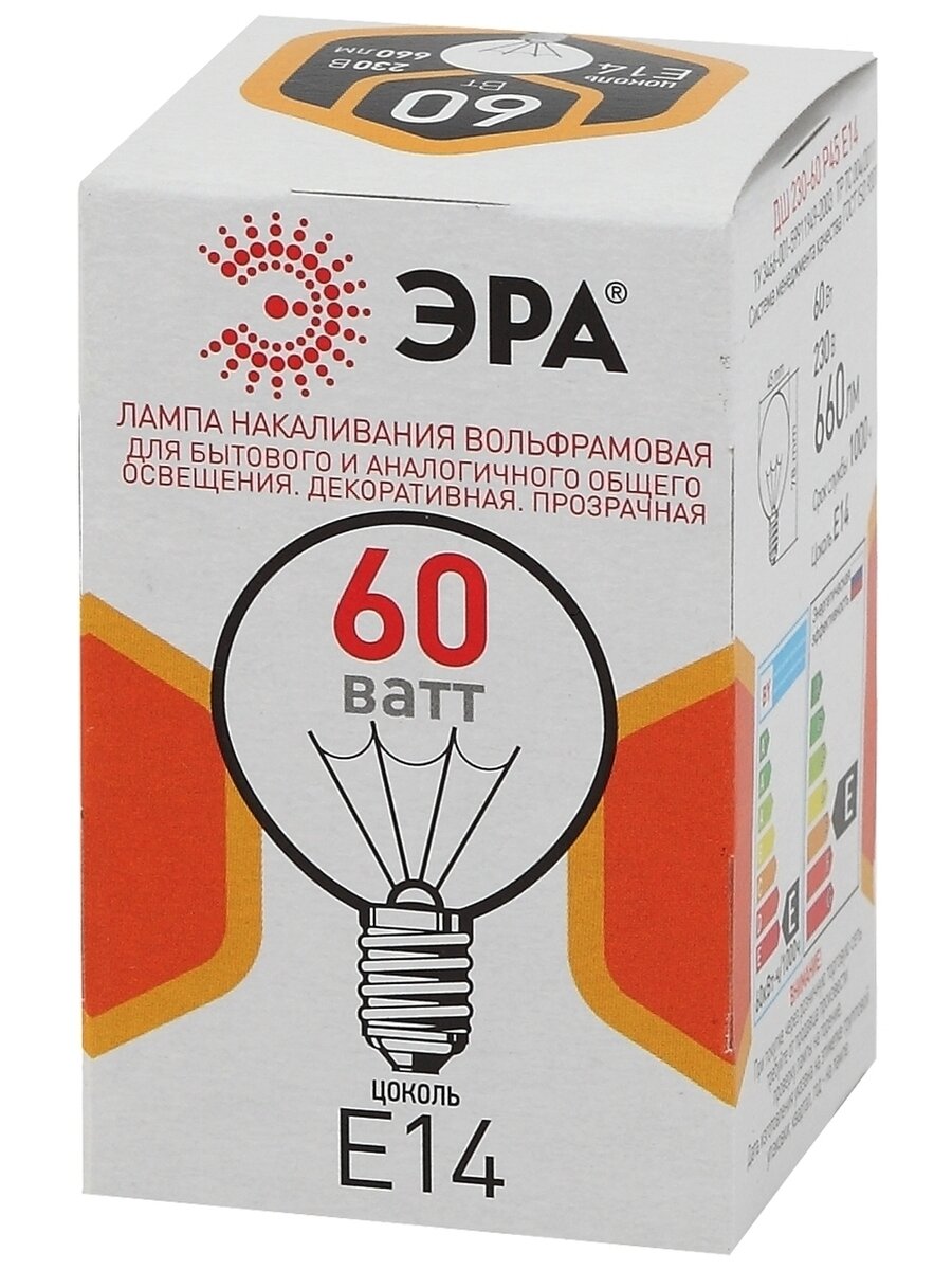 Ниже Вы можете прочитать отзывы на Лампа накаливания ЭРА P45, 60Вт, E14, прозрачный шар, 10 штук, ознакомится с подробными характеристиками, посмотреть интересные обзоры и фотографии на Лампа накаливания ЭРА P45, 60Вт, E14, прозрачный шар, 10 штук.