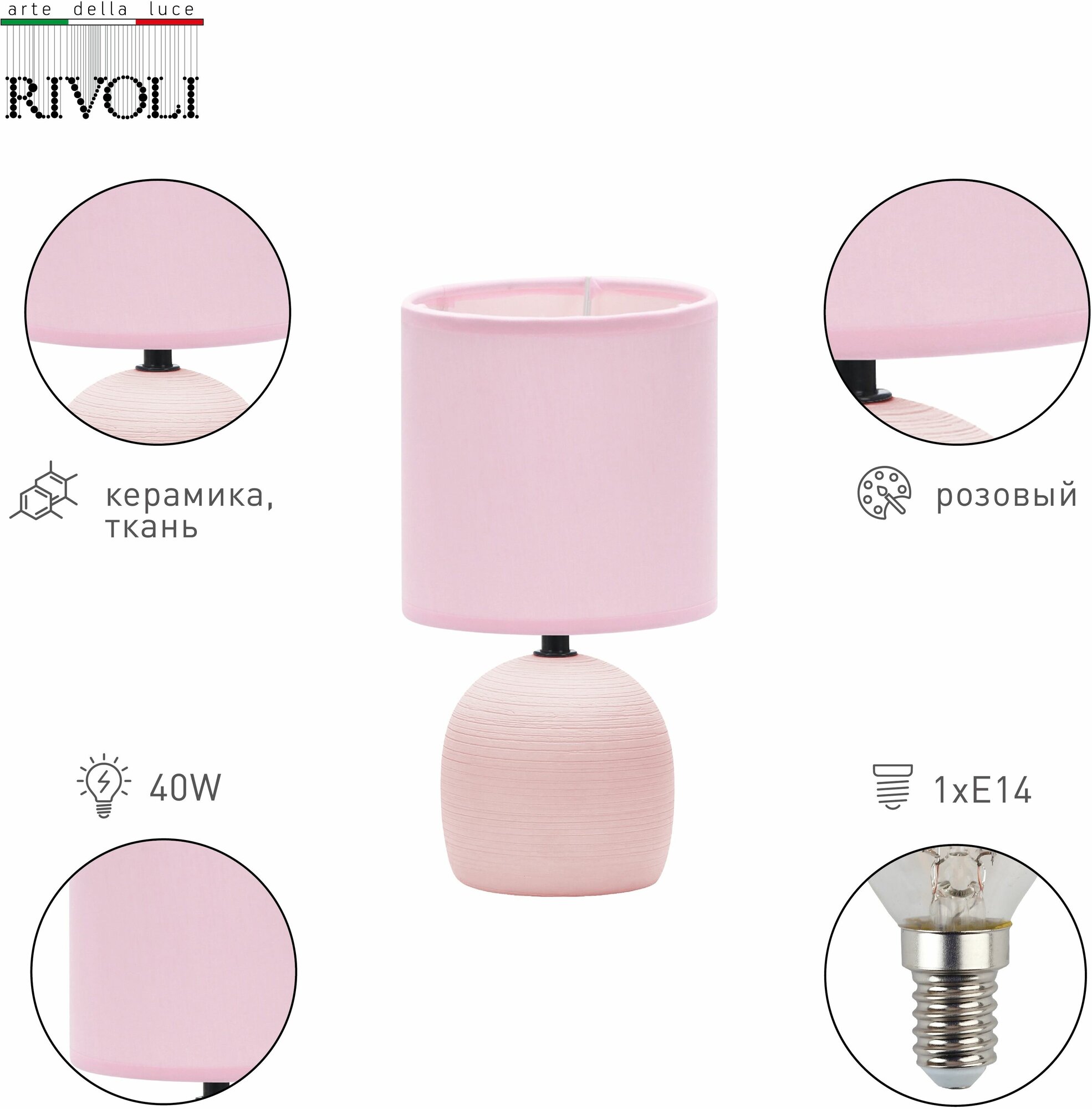 | Дополнительная информация | Лампа настольная RIVOLI Sheron E14 40Вт керамика ткань розовая |