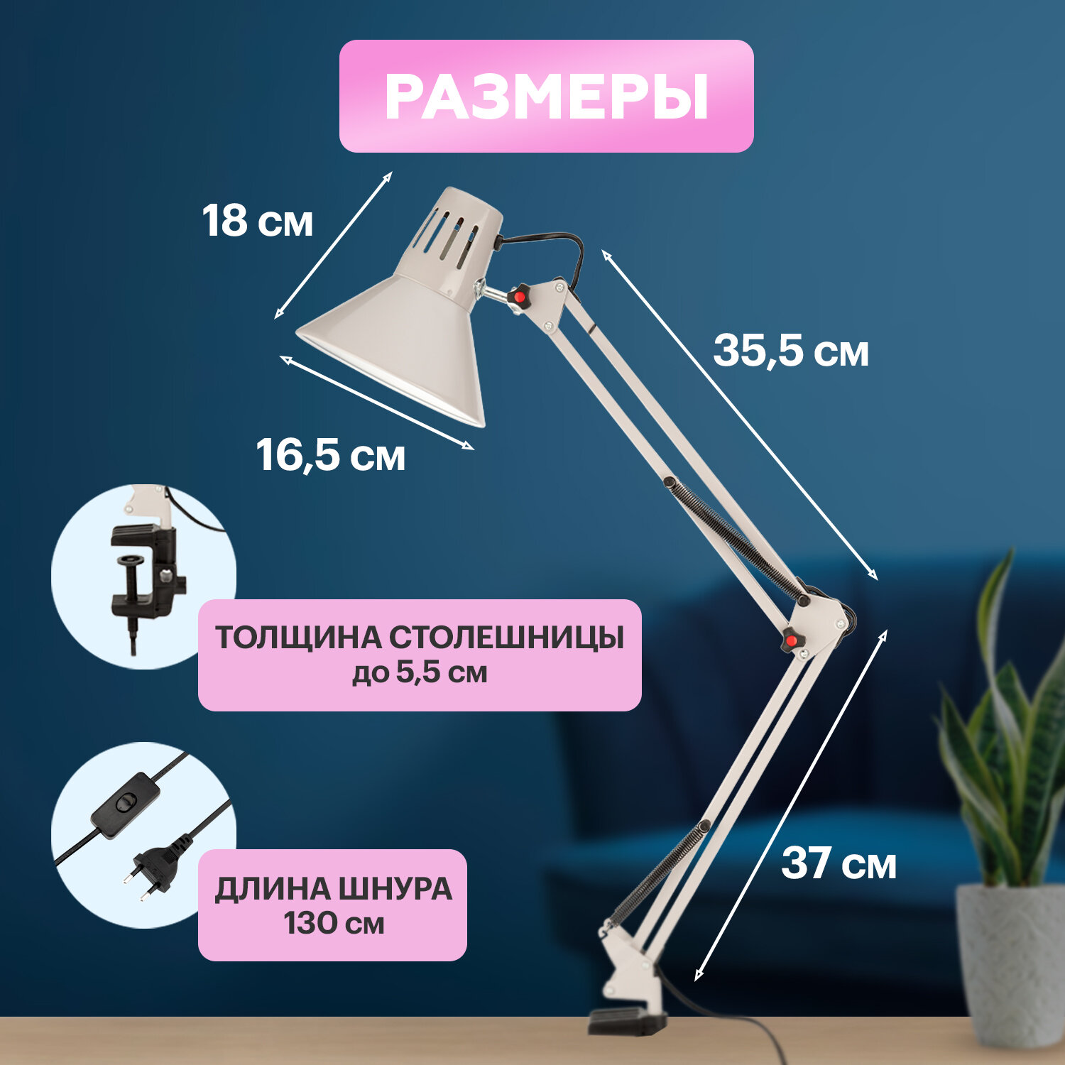 Светильник лампа настольная для учебы и работы REXANT Е27, 60 Вт
