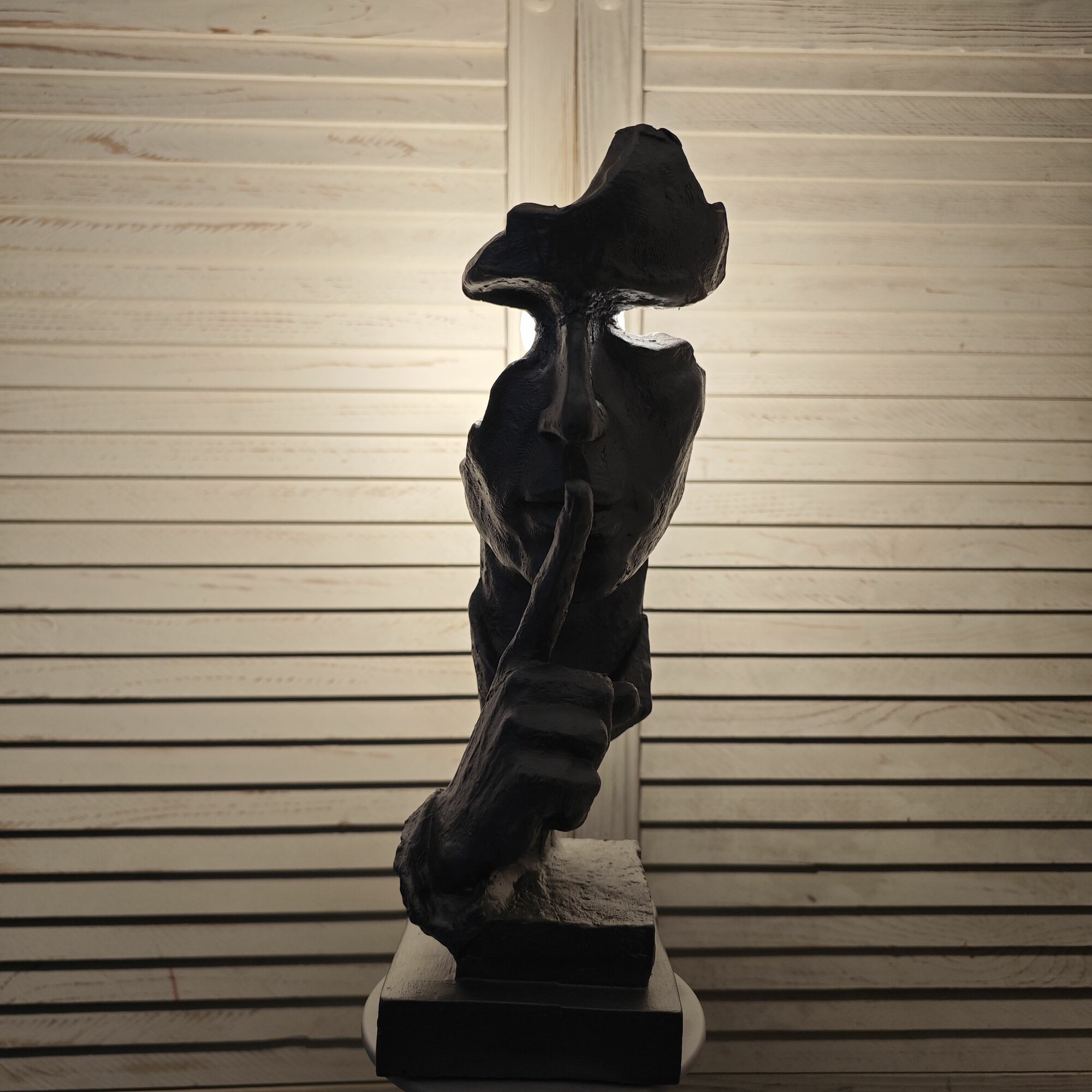 Светильник настольный в стиле лофт "Тишина (Лицо с рукой)", цвет черный