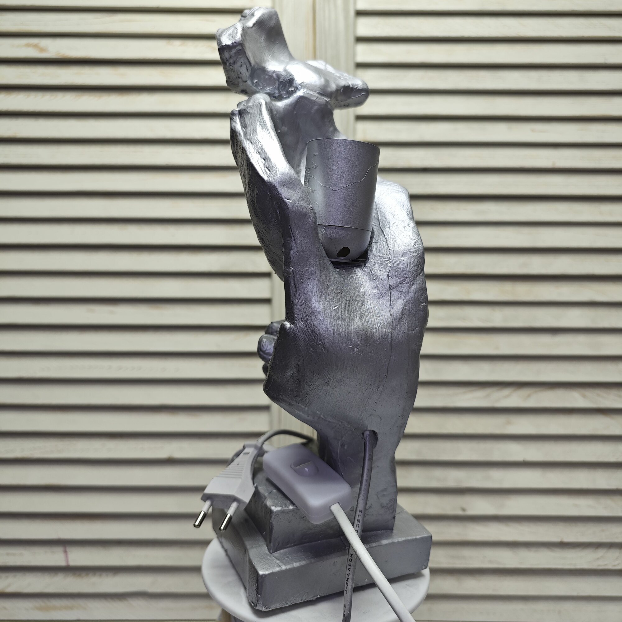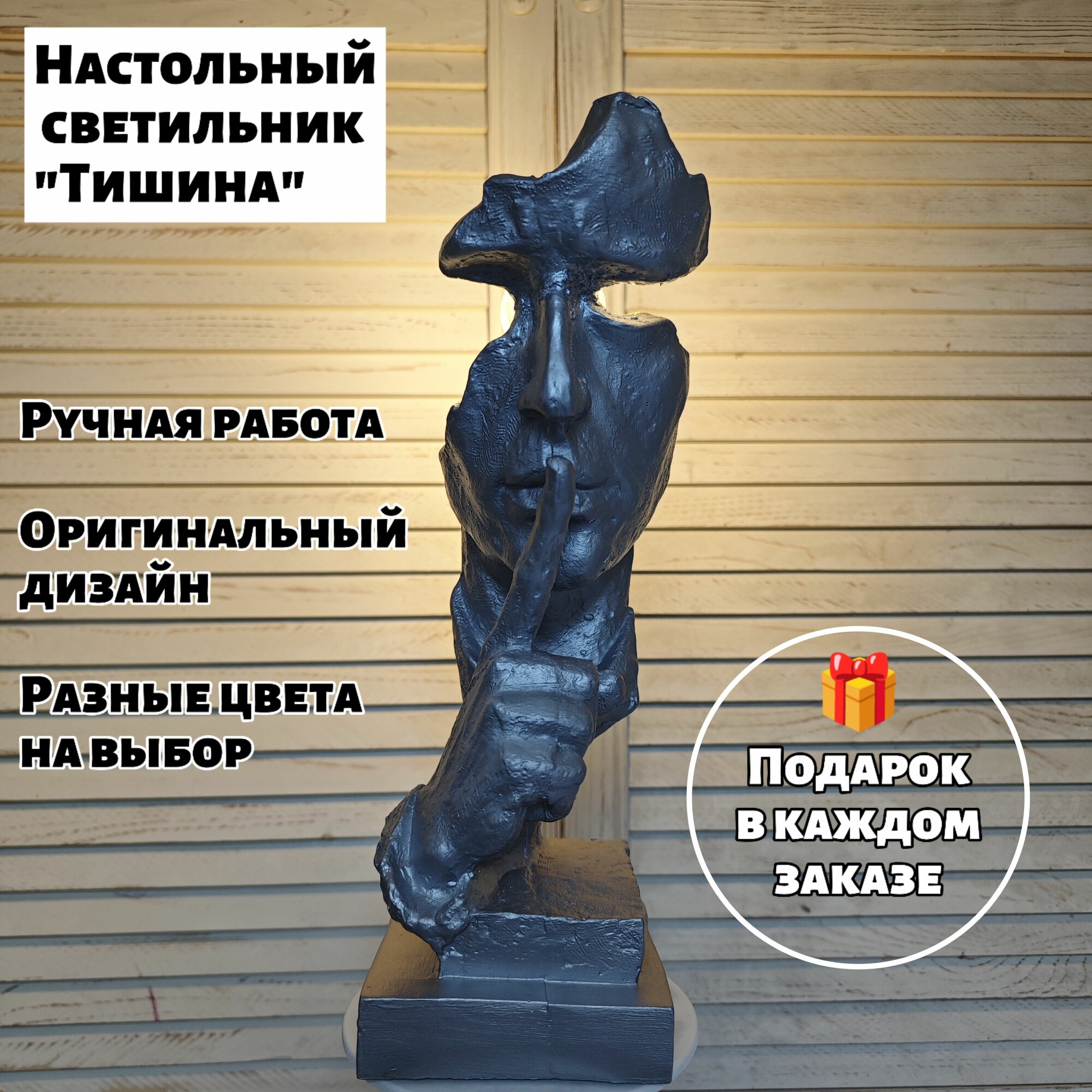 СохранитьСветильник настольный в стиле лофт "Тишина (Лицо с рукой)", цвет серебряный интересное: