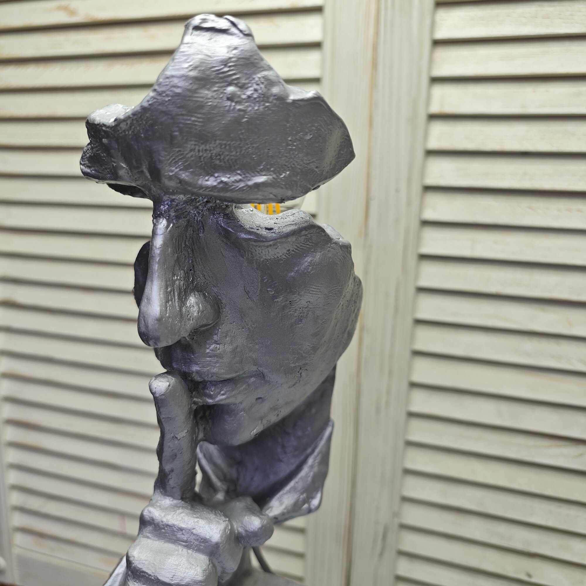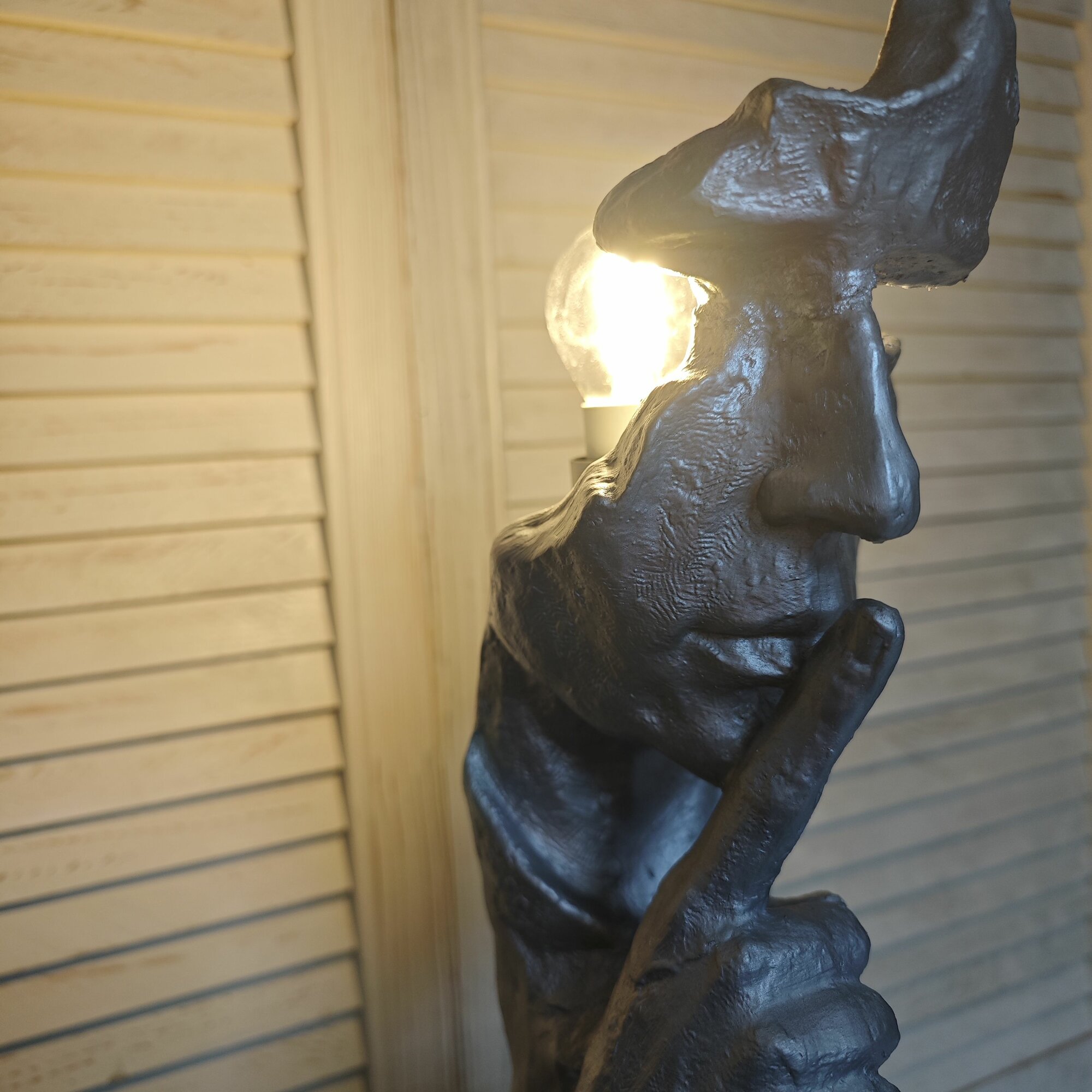 Светильник настольный в стиле лофт "Тишина(Лицо с рукой)", цвет серый