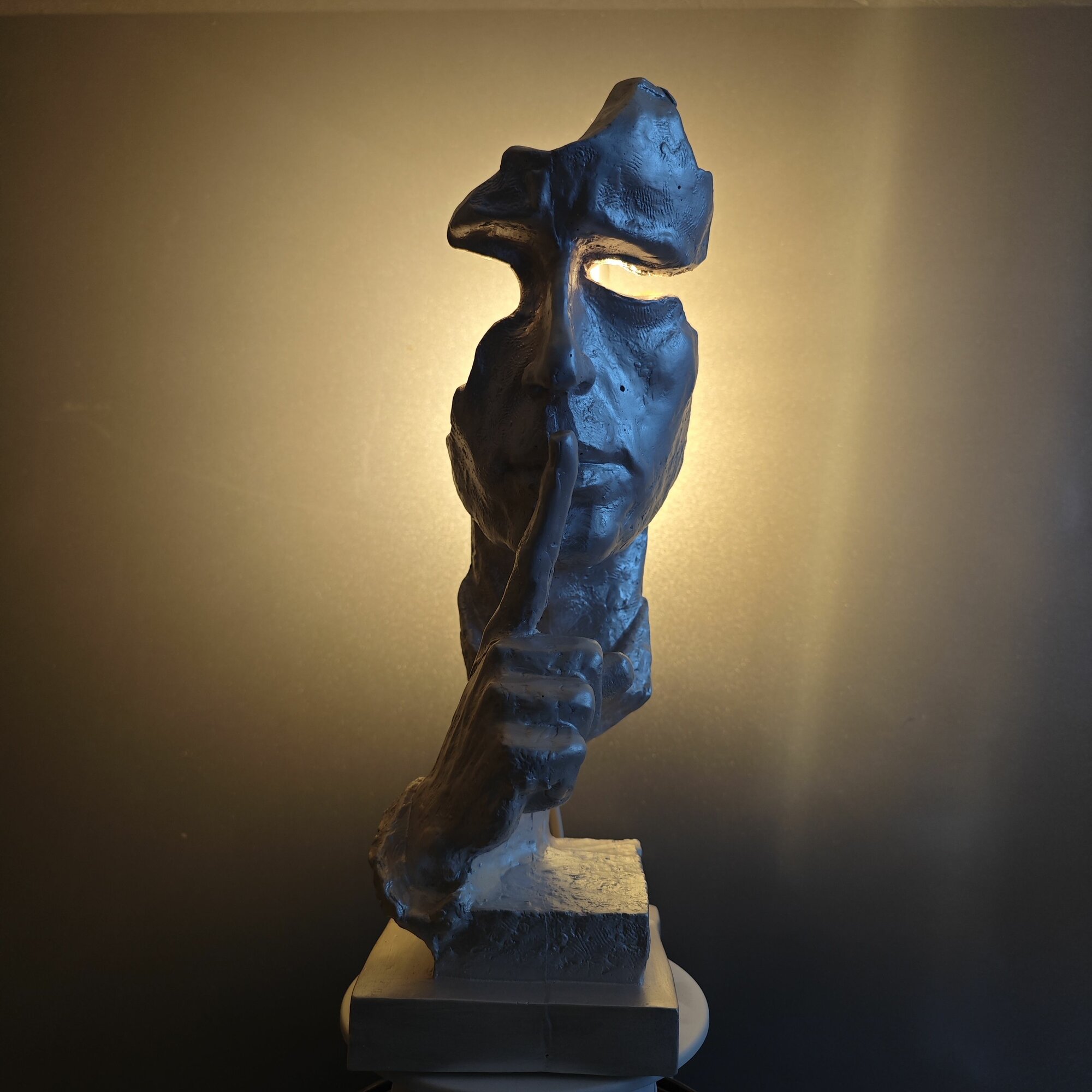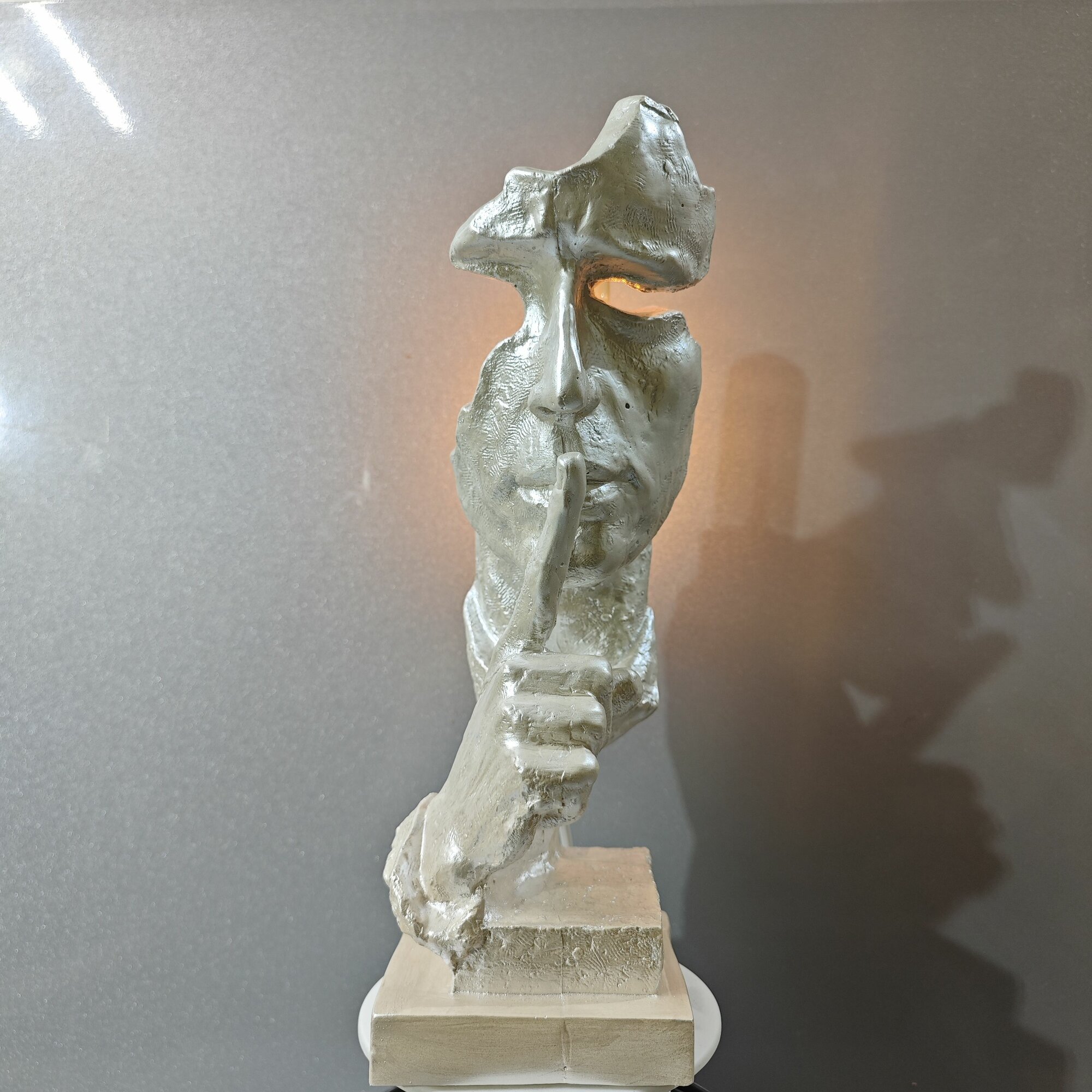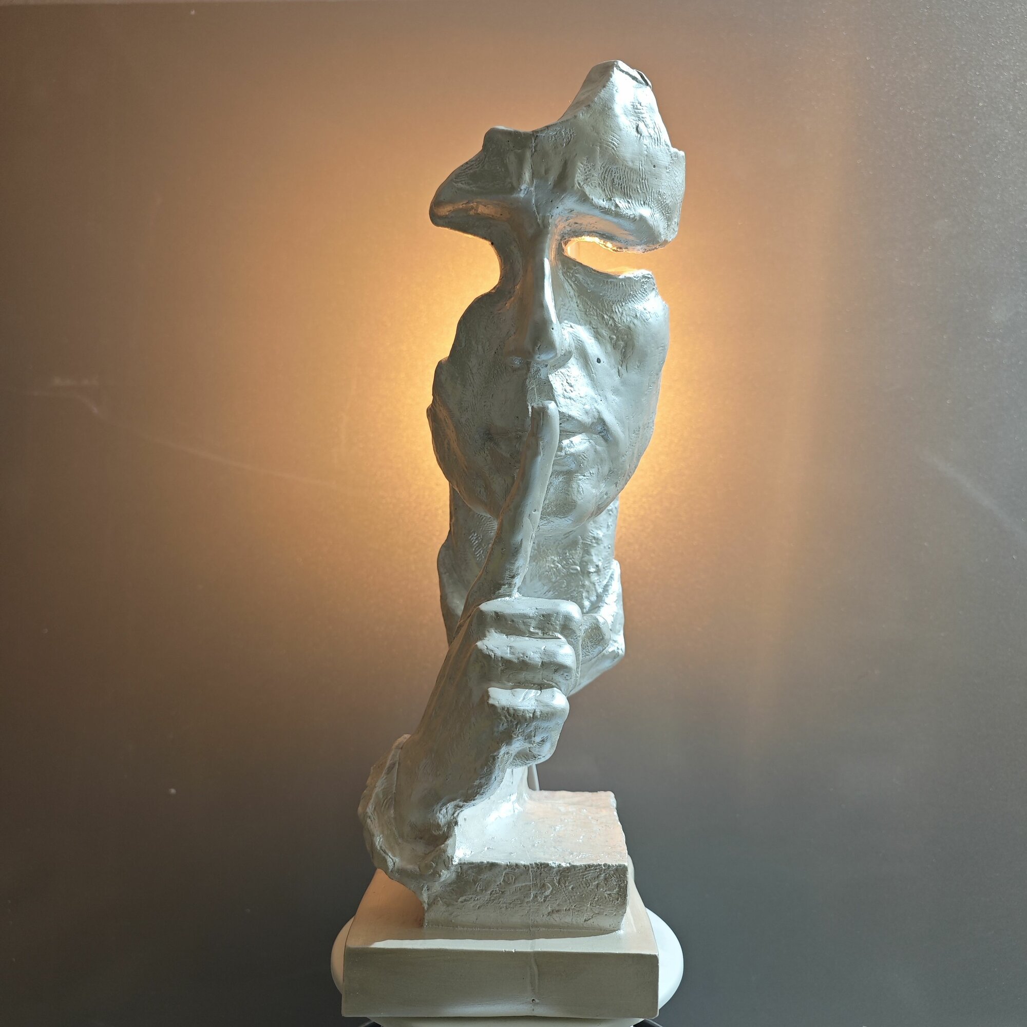 Светильник настольный в стиле лофт "Тишина (Лицо с рукой)", цвет серебряный