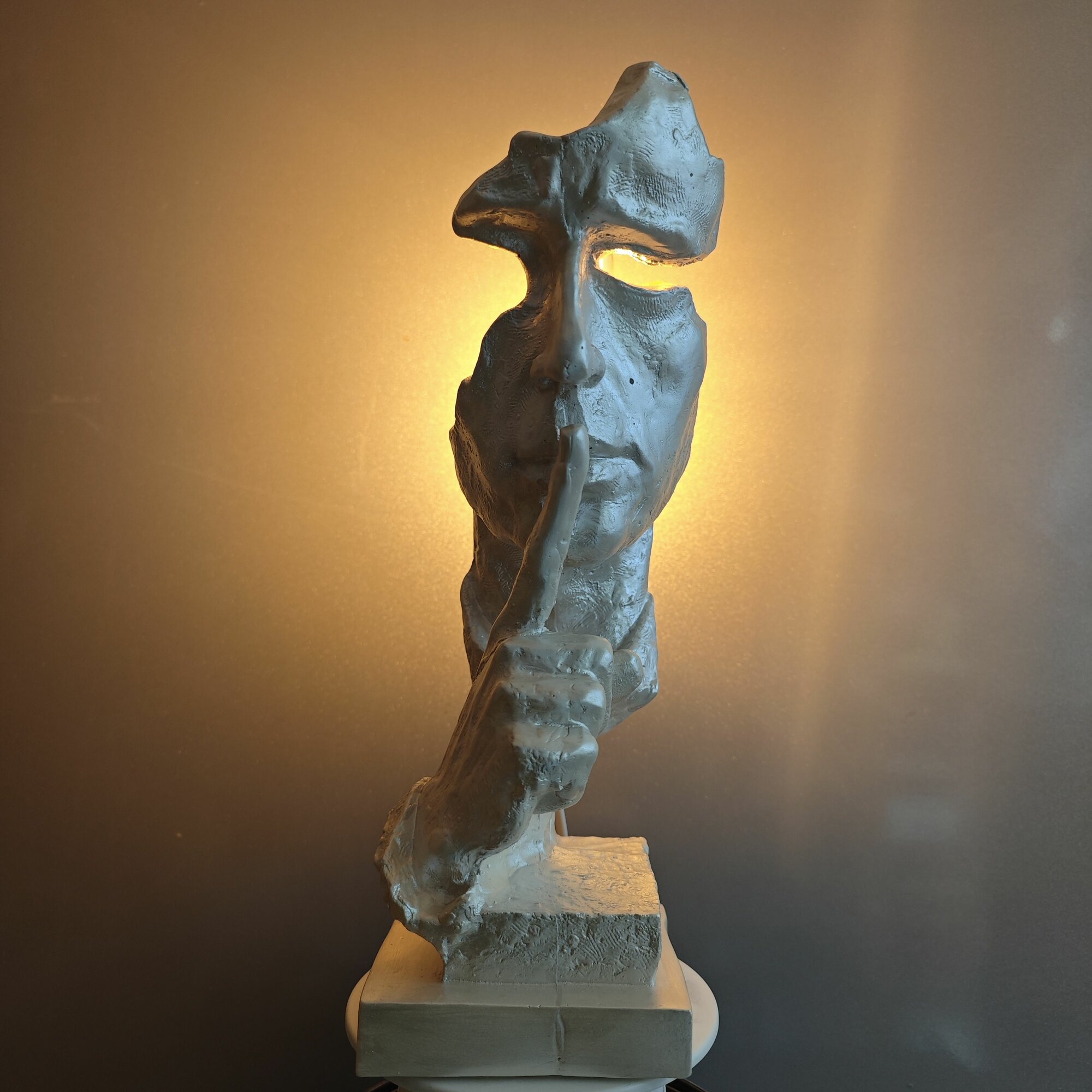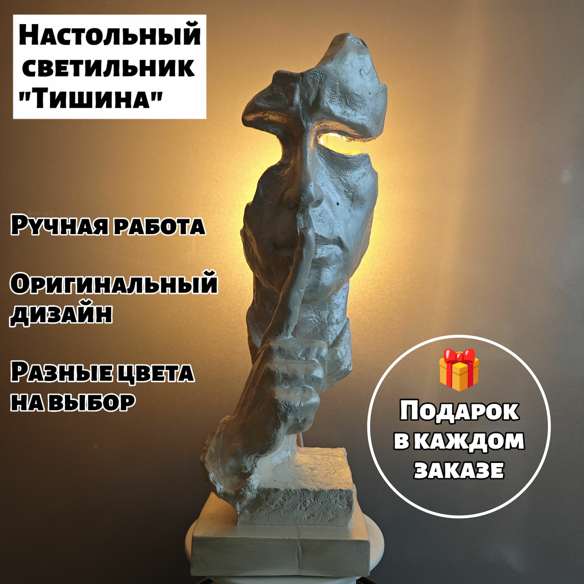 Светильник настольный в стиле лофт "Тишина(Лицо с рукой)", цвет серый