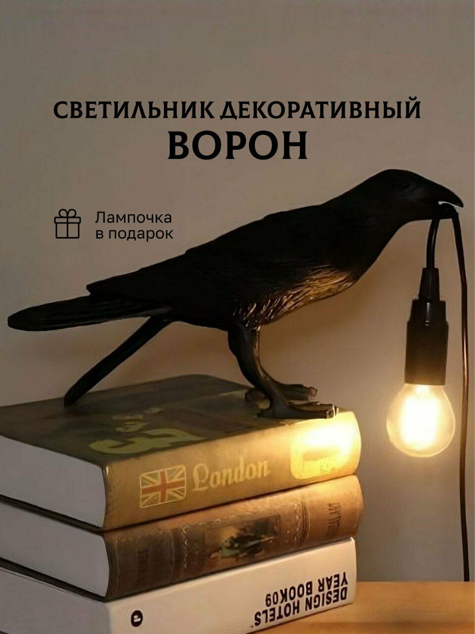 Светильник настольный ворон пригнулся черный раздвоений хвост интересное: