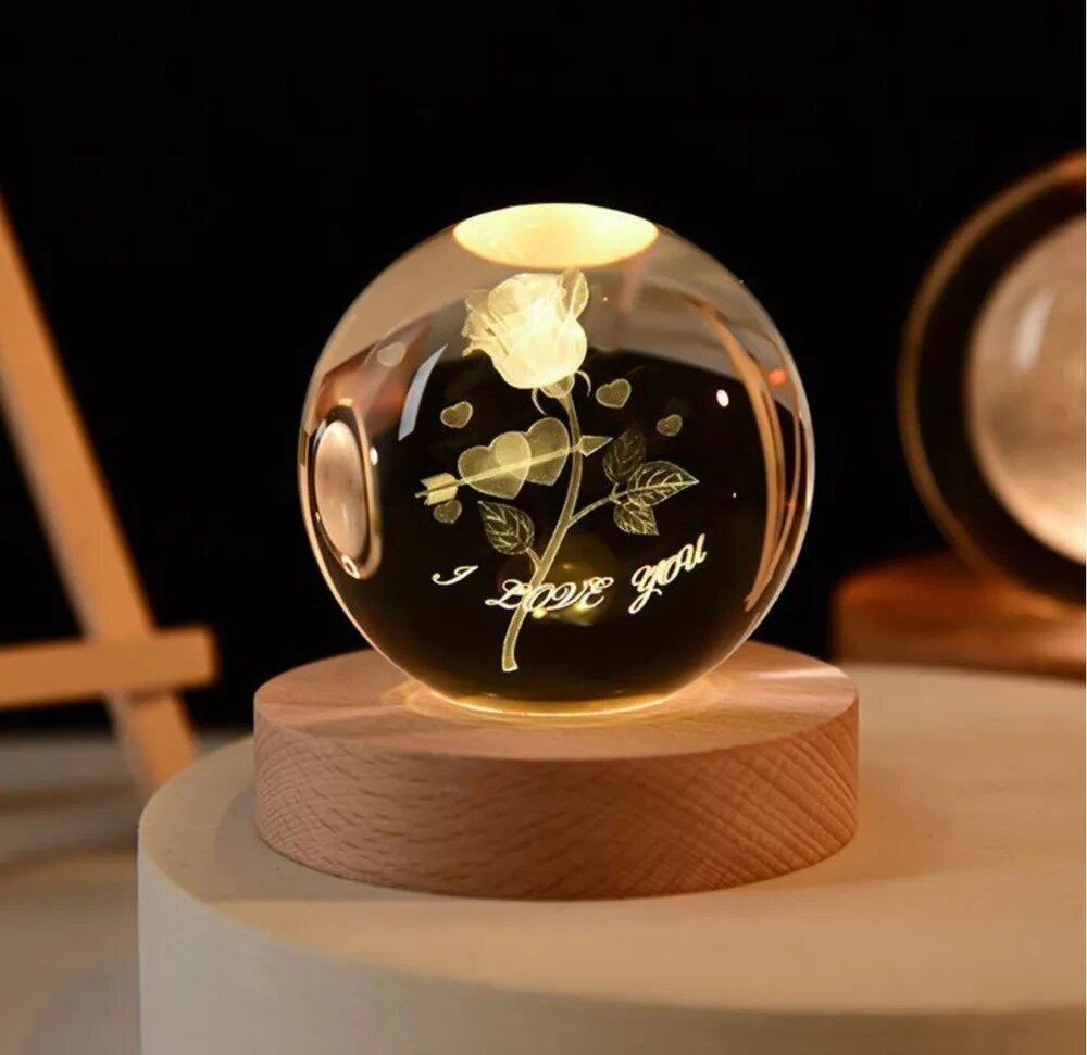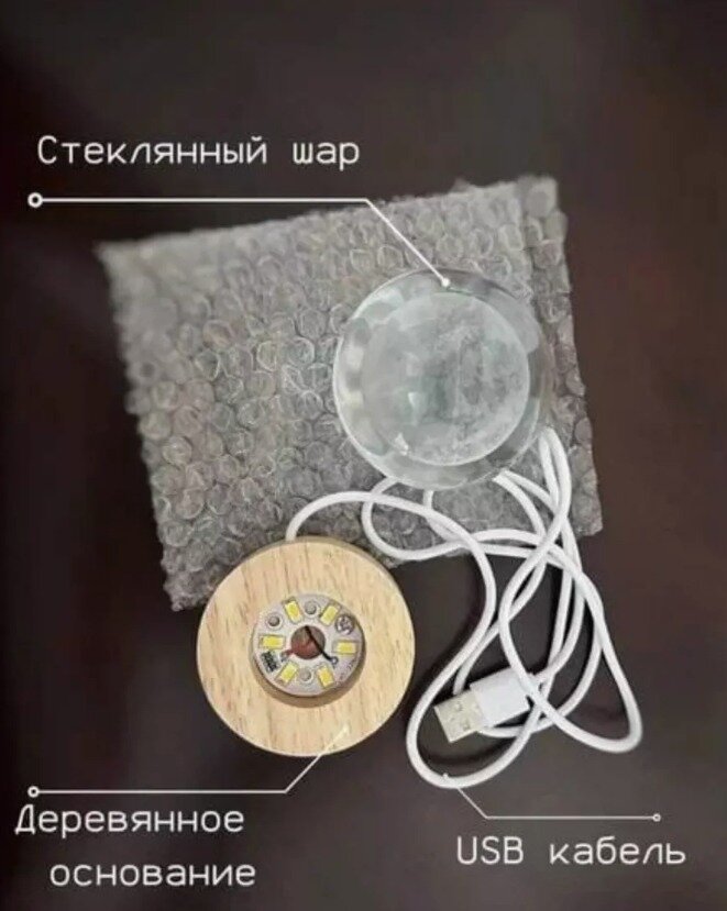 Хрустальный шар 3д ночник, магический шар с гравировкой светодиодный, питание 5V от USB кабеля