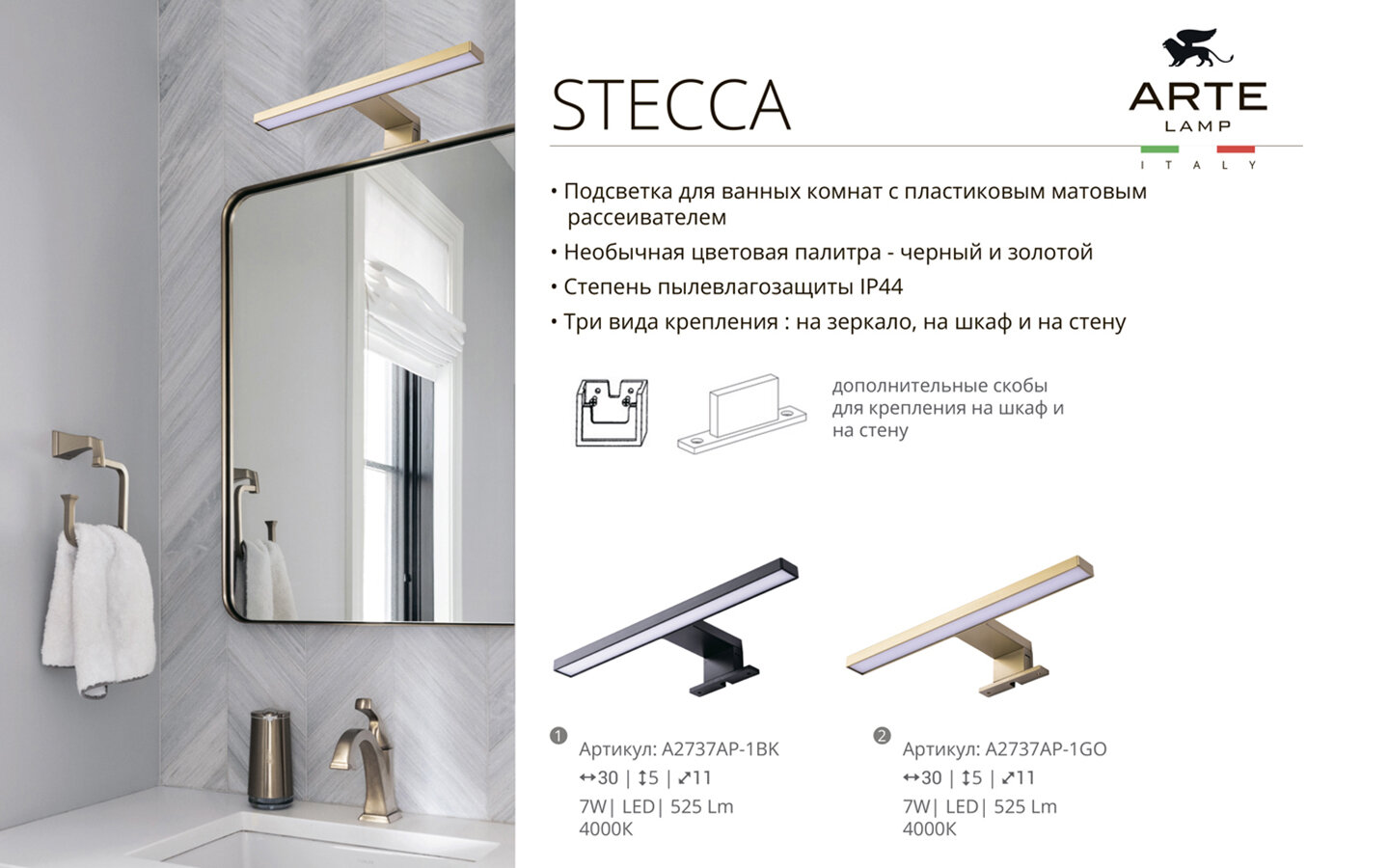 Ниже Вы можете прочитать отзывы на Подсветка для зеркал Arte Lamp STECCA A2737AP-1BK LED черный, ознакомится с подробными характеристиками, посмотреть интересные обзоры и фотографии на Подсветка для зеркал Arte Lamp STECCA A2737AP-1BK LED черный.
