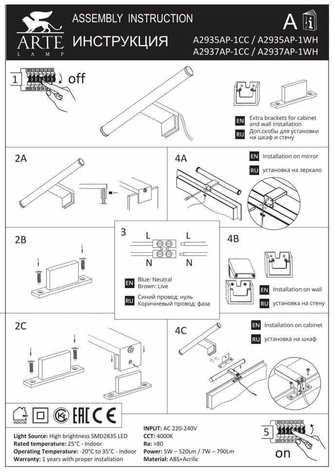 Подсветка для зеркал Arte Lamp ORIZZONE A2937AP-1CC