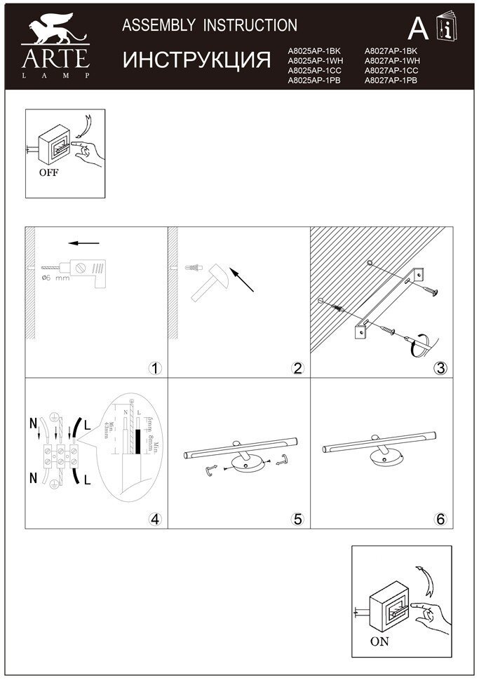 Подсветка для зеркал Arte Lamp ORIZZONE A2935AP-1BK