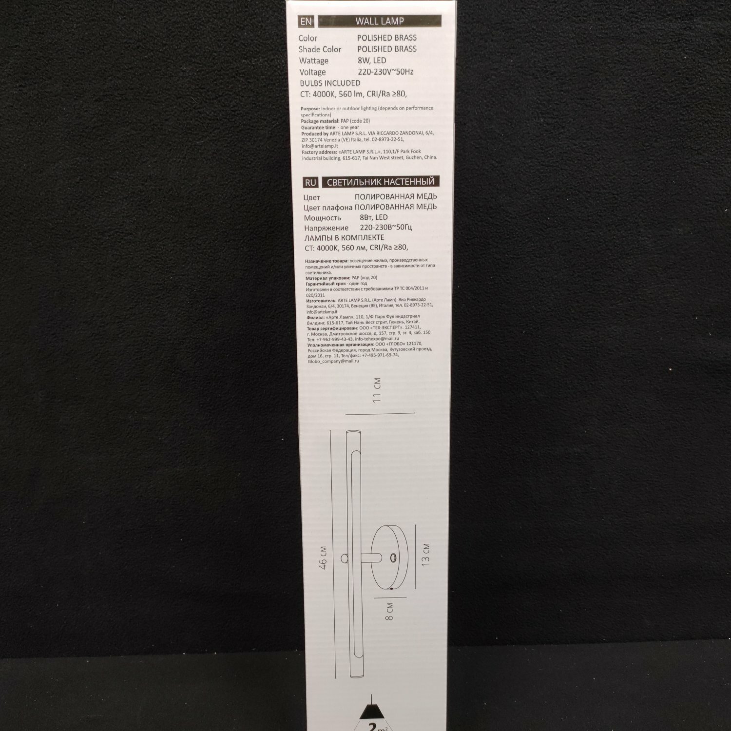 Подсветка зеркал и полок Arte Lamp Ronnie A8027AP-1PB, LED, кол-во ламп:1шт, Медь