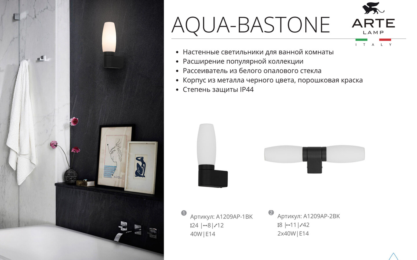 ARTE LAMP Подсветка для зеркал Arte Lamp AQUA-BASTONE A1209AP-1AB