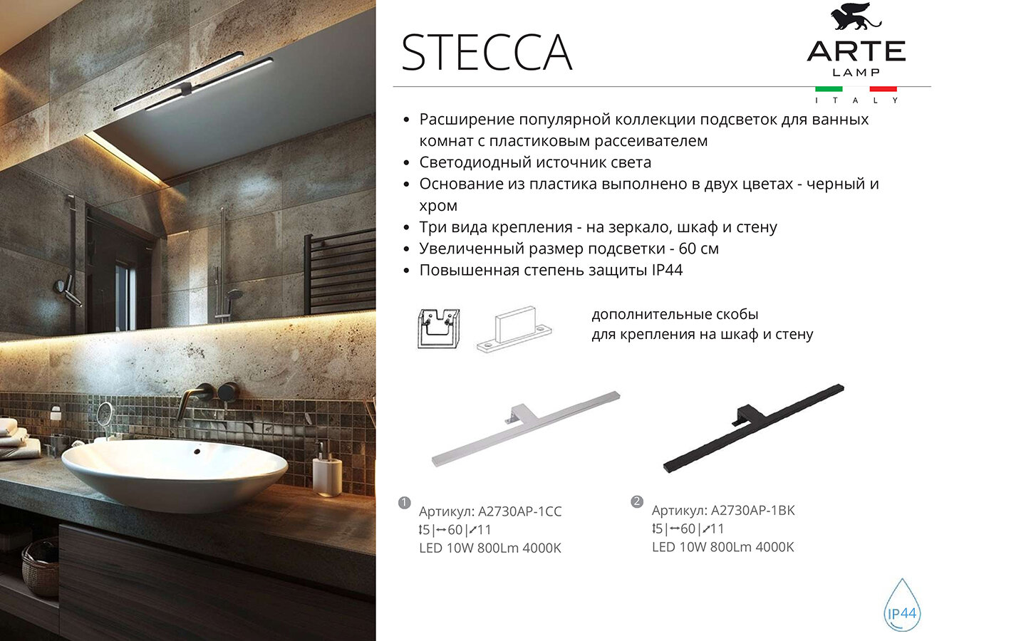Подсветка для зеркал Arte Lamp STECCA A2730AP-1BK