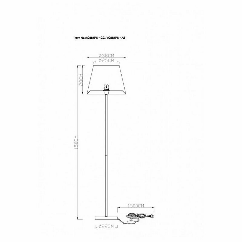 Торшер ArteLamp PAOLO A4060PN-1CC, E27, 60 Вт, металл, ткань, хром