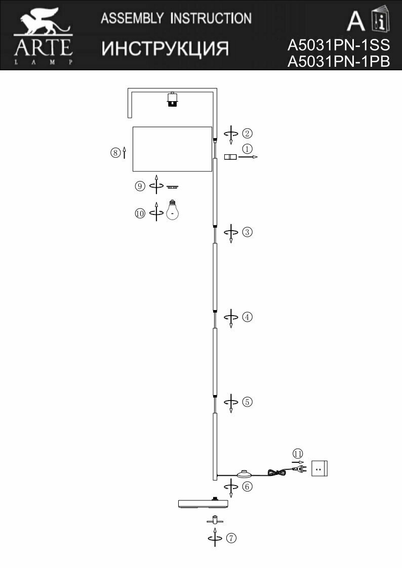 Arte Lamp A5031PN-1PB светильник напольный