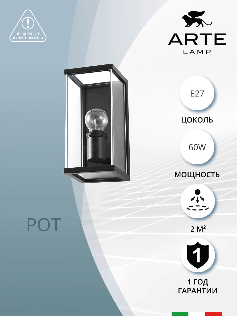 Уличный настенный светильник Arte Lamp POT A1631AL-1BK E27 чёрный
