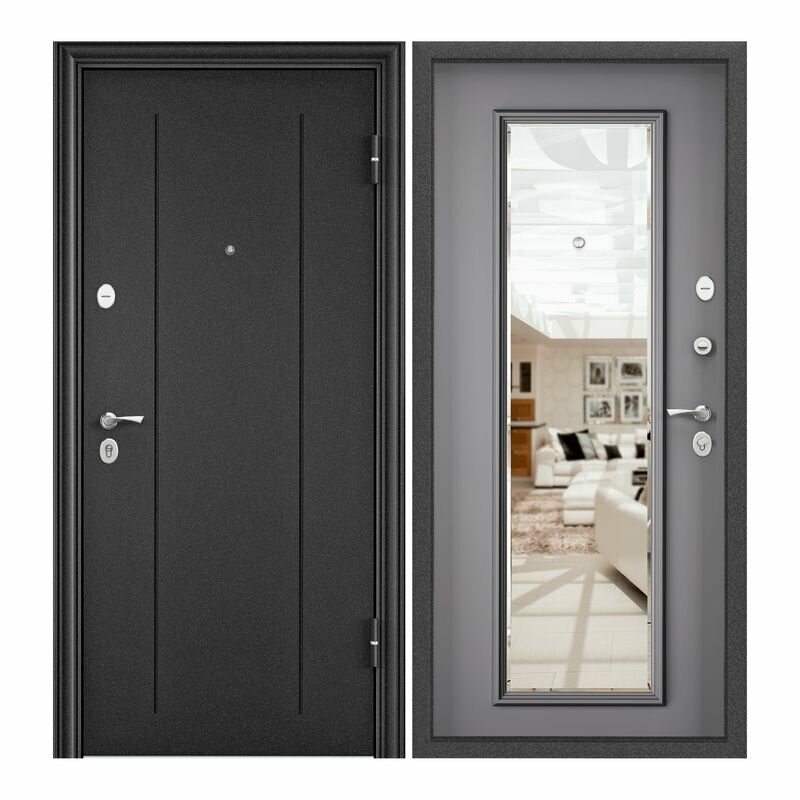 Дверь входная Torex для квартиры металлическая Flat-M 860х2100, открывание впарво, тепло-шумоизоляция, антикоррозийная защита, замки 4-го и 2-го класса, зеркало