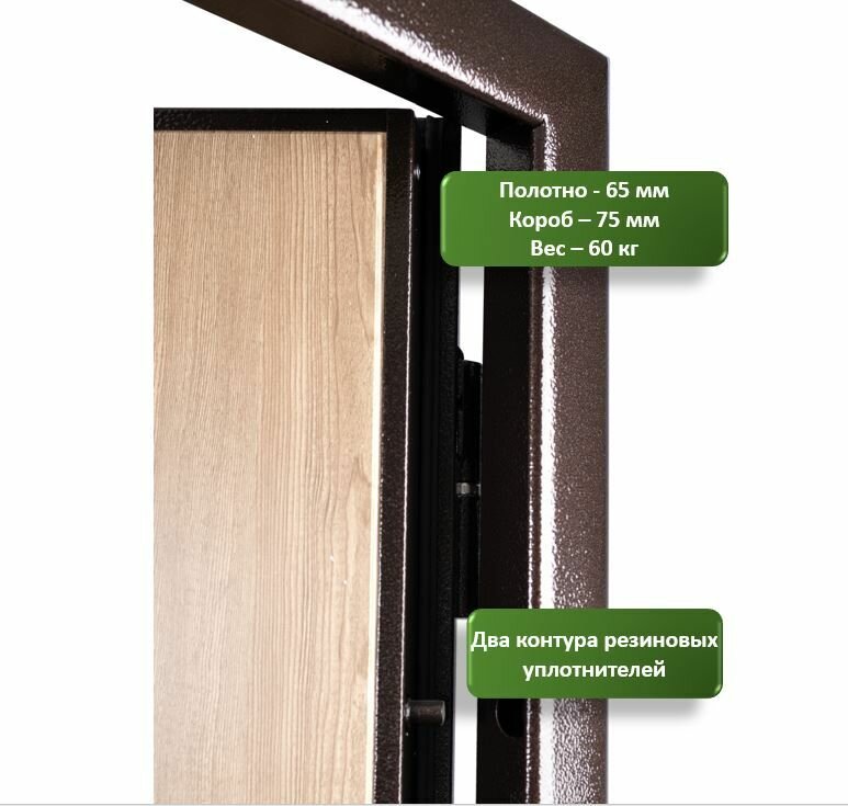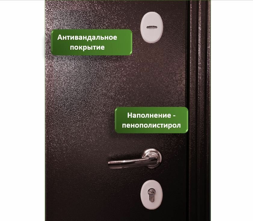 | Комплектация двери | глазок / задвижка / замок / петли / противосъемные штыри / ручки / эксцентрик |