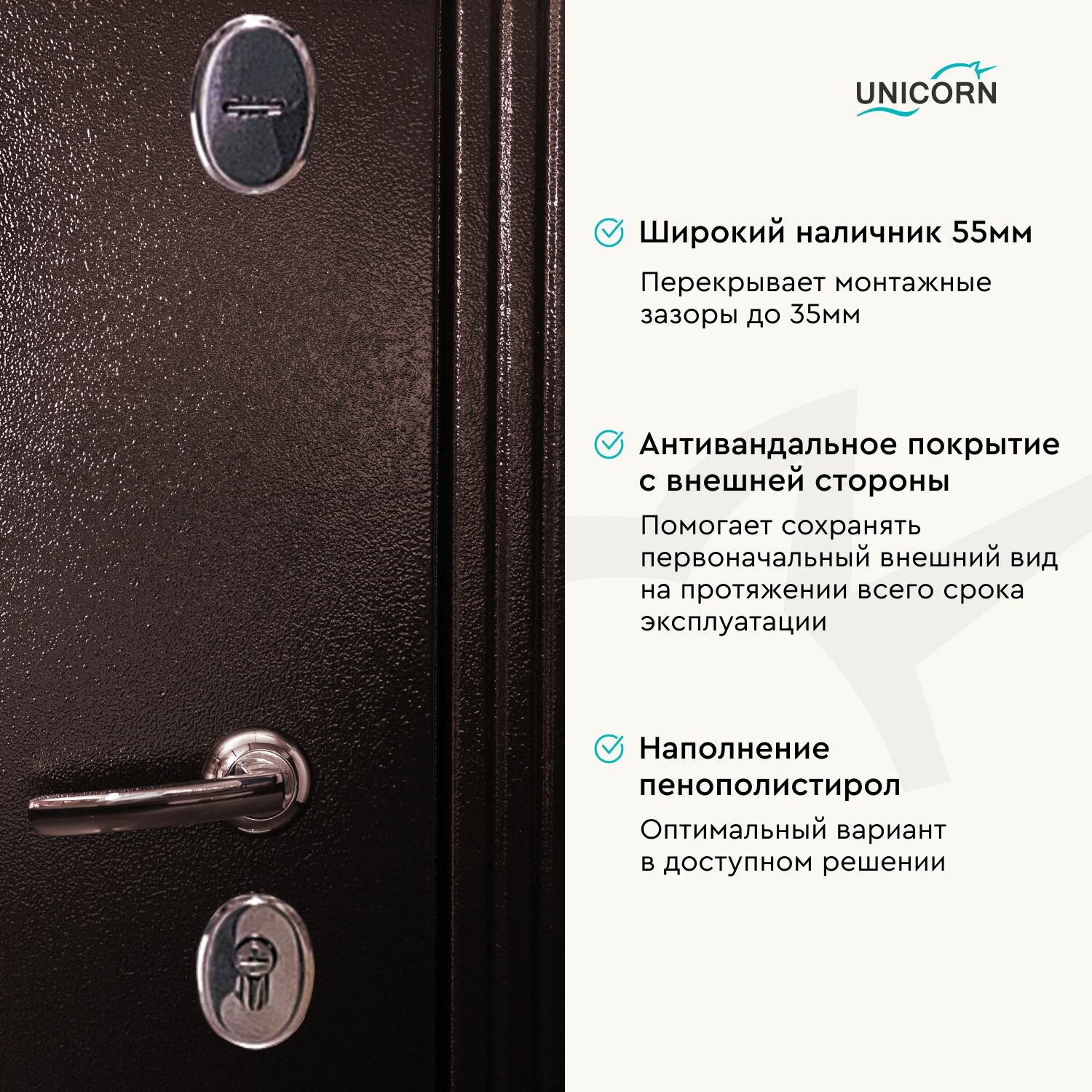 Дверь входная металлическая в квартиру Unicorn Apartment 970х2050 левая, антивандальное покрытие, два контура уплотнителя, коричневый/бежевый интересное: