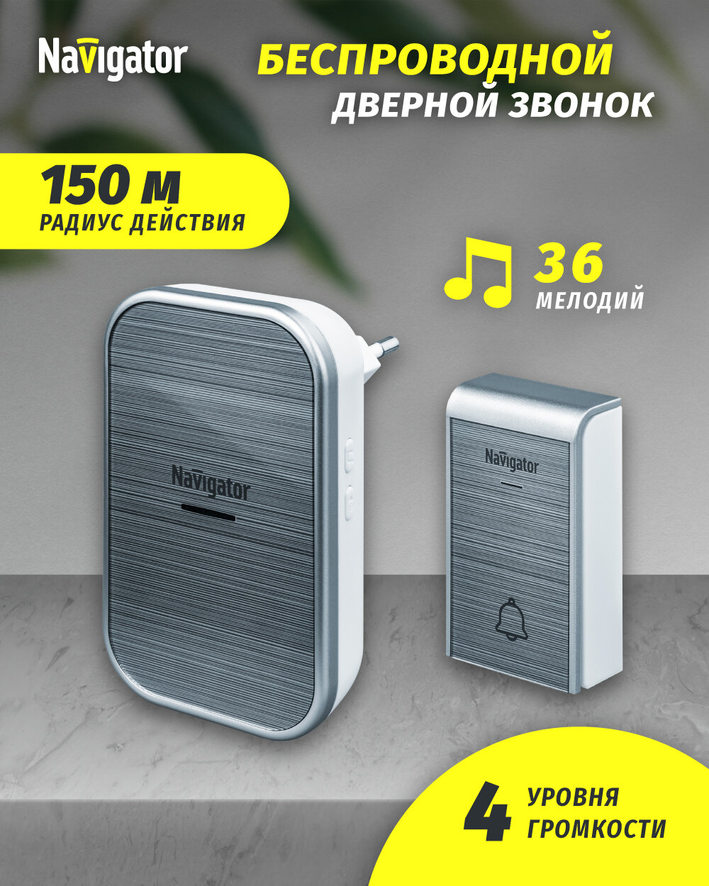 Звонок дверной беспроводной цифровой Navigator 80 507, 36 мелодий, серебро интересное: