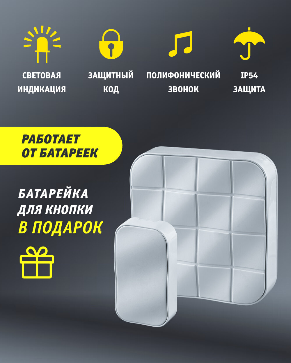 | Вид звонка | электронный беспроводной |