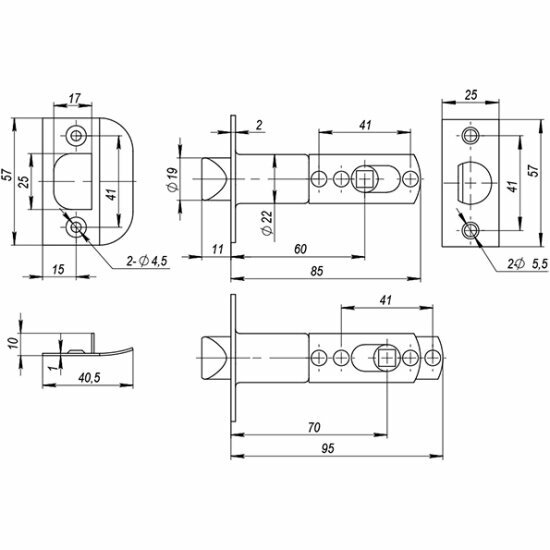 | Комплектация | 2 дверные ручки, 1 защелка, 1 ответная планка с вкладышем, 4 самореза, 1 монтажный ключ, инструкция по установке |
