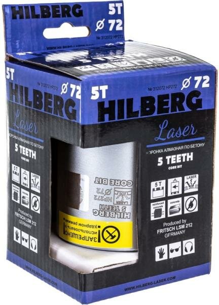 Коронка алмазная по бетону 72 мм Laser Five Teeth HP272 Hilberg, шт Hilberg