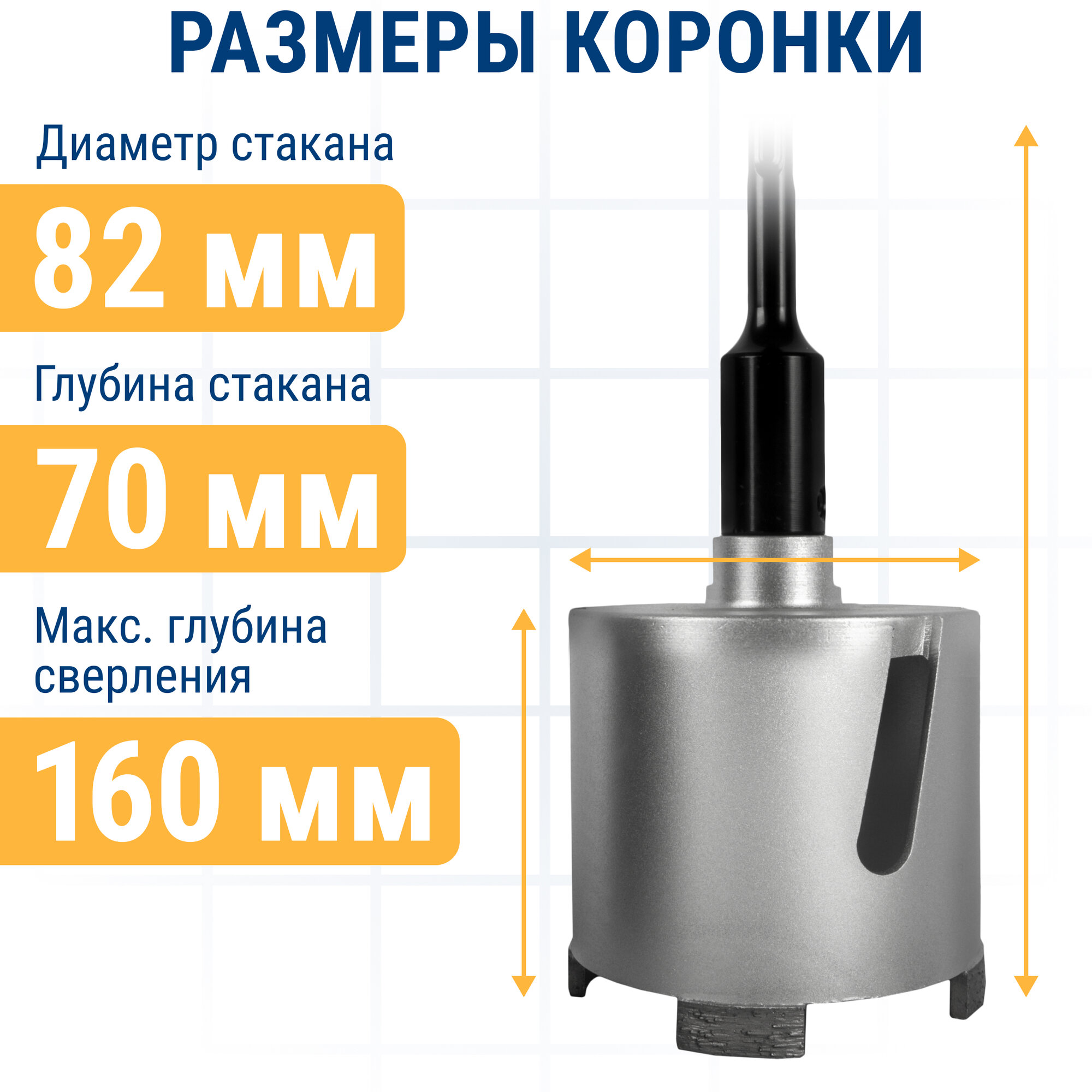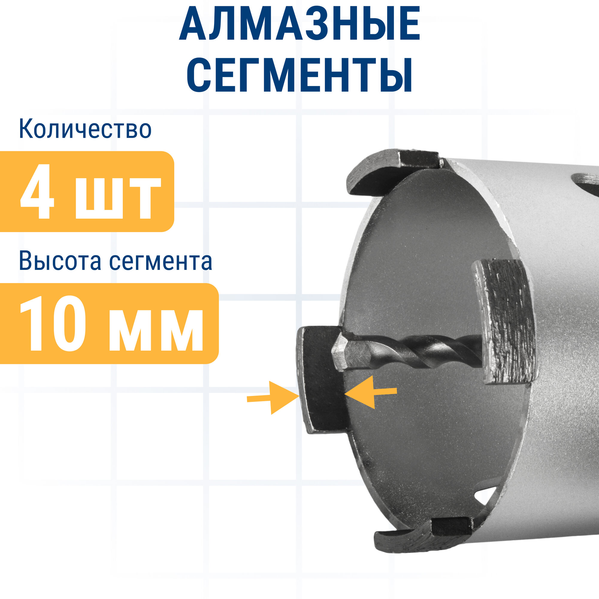 СохранитьКоронка алмазная по бетону "Профи" по бетону SDS-plus безударная 82 мм 4 сегмента высотой 10мм ПРАКТИКА интересное: