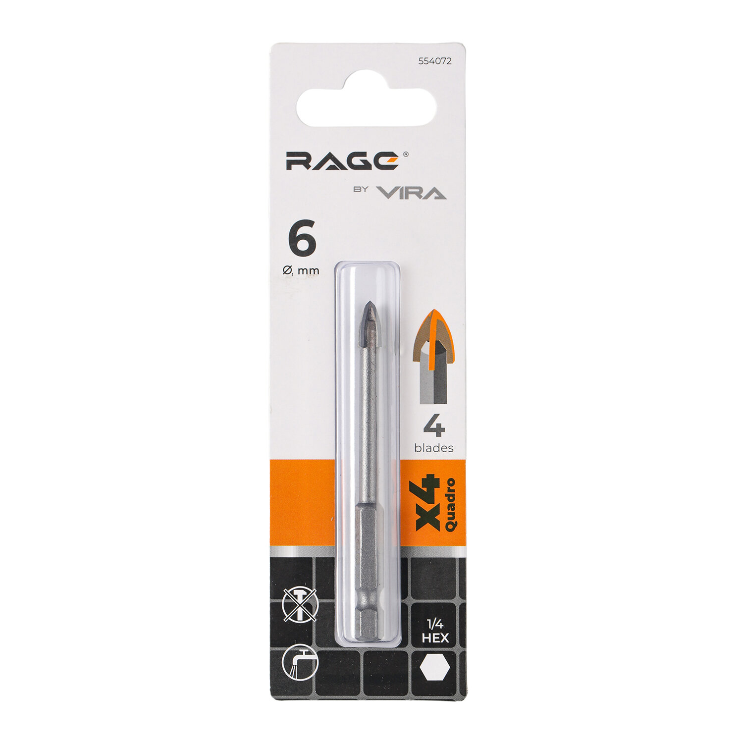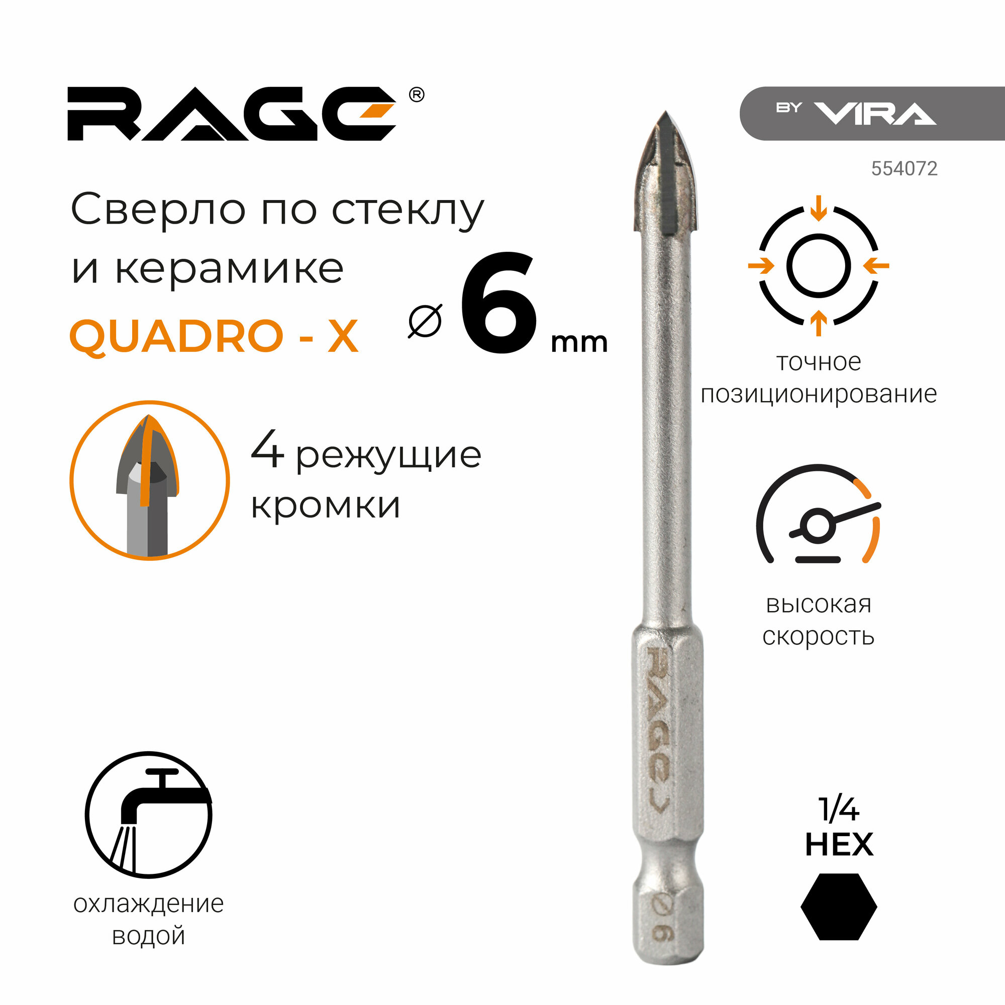RAGE by VIRA Сверло по стеклу и керамике quadro-x hex 6 мм 554072