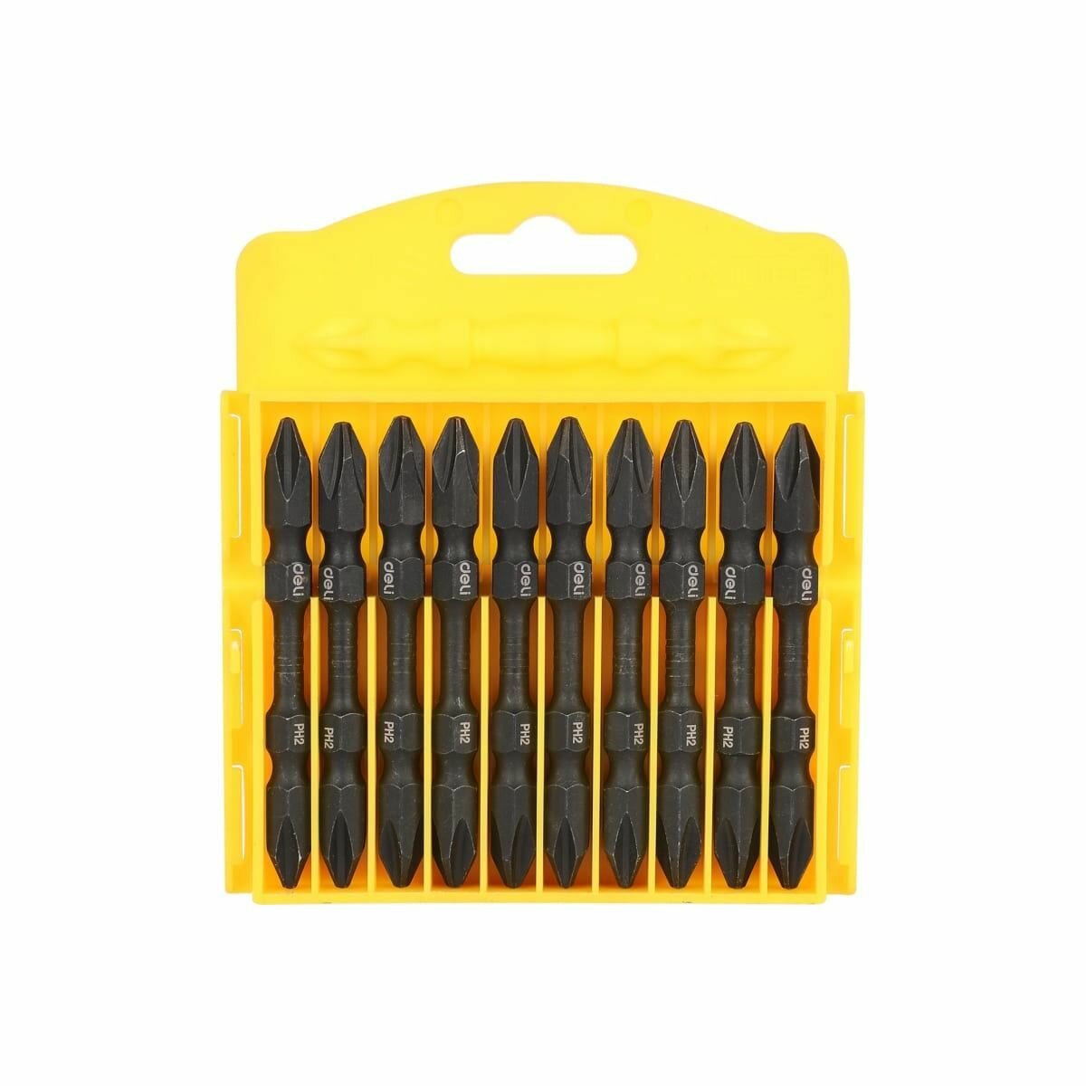 Набор двухсторонних бит 10 шт Deli DL6902 PH2х65мм, сталь S2 с твердостью 58-60HRC, пласт.кейс