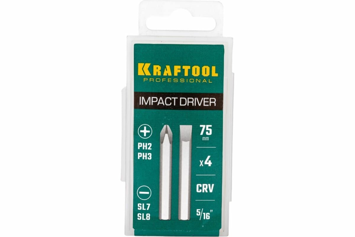 Биты для ударной отвертки 4 шт 75 мм, KRAFTOOL 25552