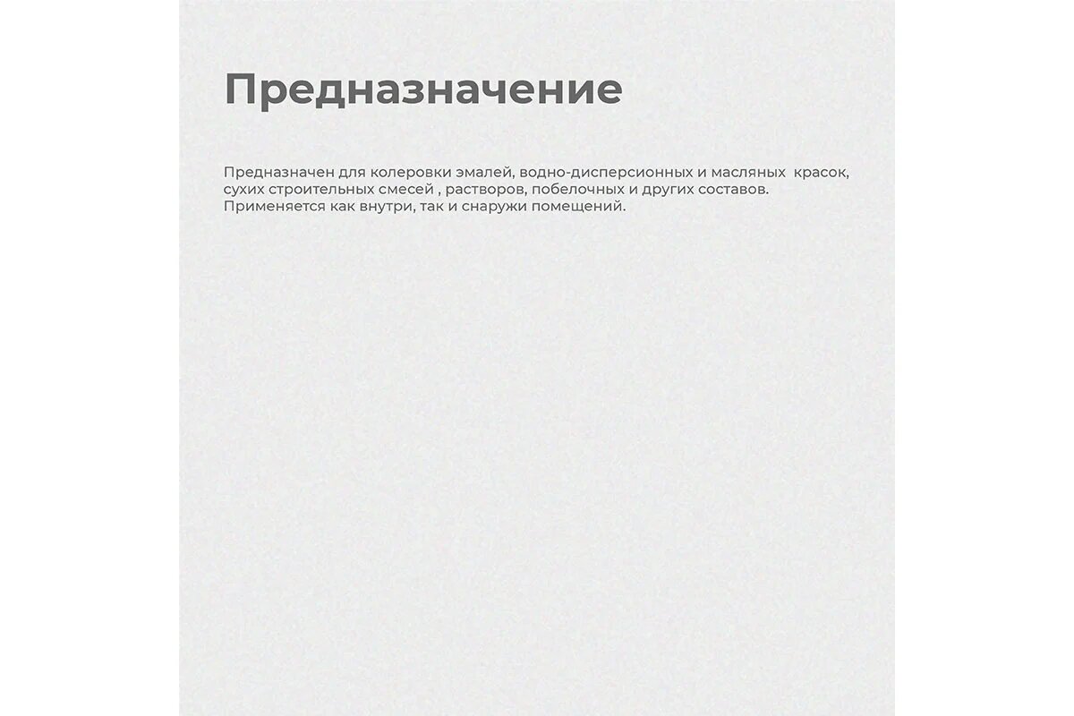 | Назначение | для акриловой краски / для алкидных красок / для водоэмульсионных и дисперсных красок / для затирки / для лаков / для масляных красок / для побелочных смесей / для эмалей / универсальный |