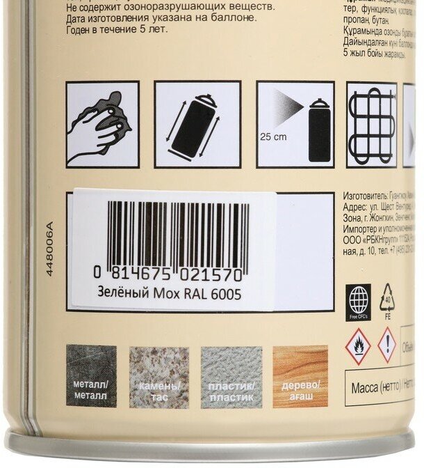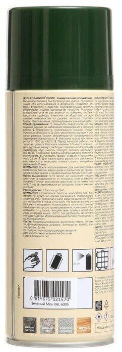 Краска аэрозольная Coralino Ral6005, зеленый мох, 520 мл .
