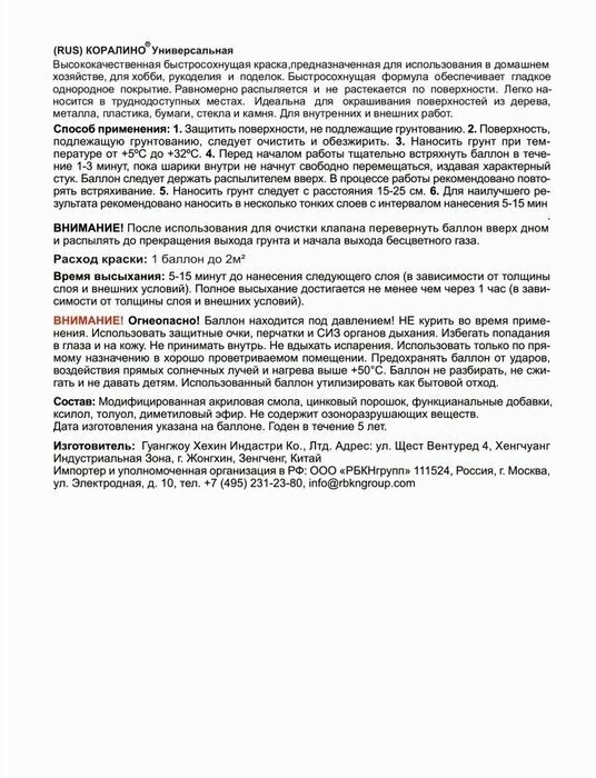 | Подробная комплектация | Аэрозольный баллон - 1 шт. |