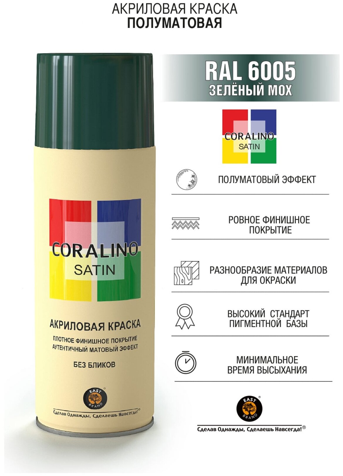 СохранитьКраска аэрозольная Coralino RAL6005, зеленый мох, 520 мл интересное: