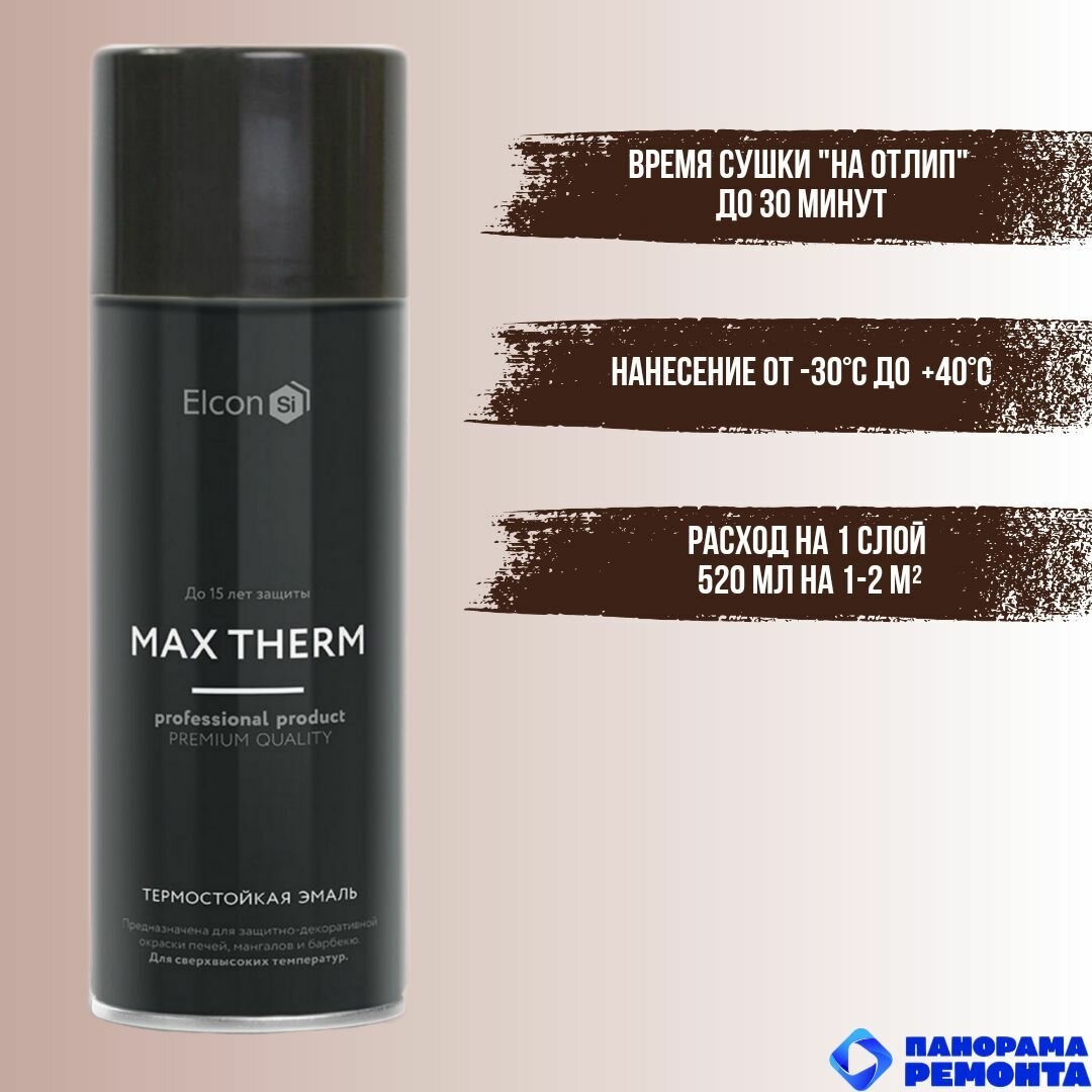 Эмаль Термостойкая Аэрозоль Elcon Max Therm 520мл 700°С Темный Шоколад, Антикоррозионная для Защитной Окраски Печей, Котлов, Металлического Оборудования / Элкон.