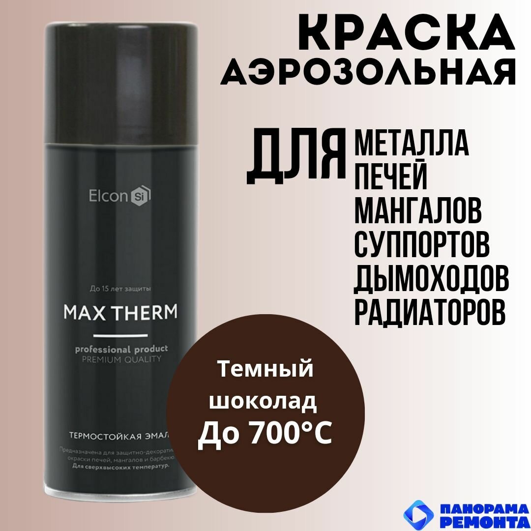 Купить Краска аэрозольная Elcon Max Therm Темный шоколад (до 700С) для мангалов, быстросохнущая, термостойкая, аэрозоль 520 мл