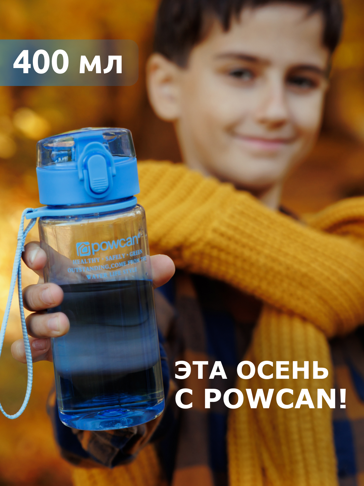 Купить Бутылка для воды POWCAN - blue 400 мл. глянцевая