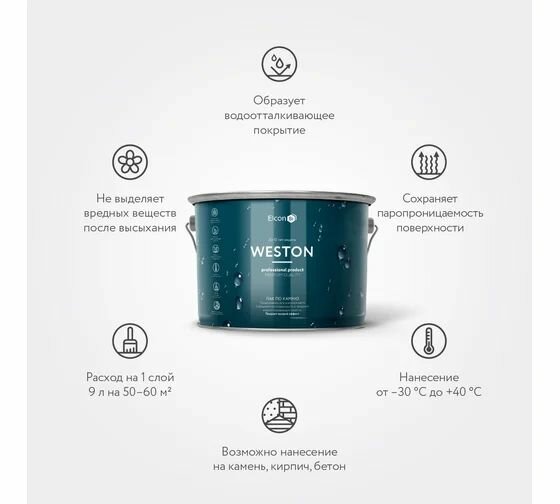 | Особенности | антисептик, быстросохнущий, водостойкий, износостойкий, морозостойкий, с эффектом мокрого камня |