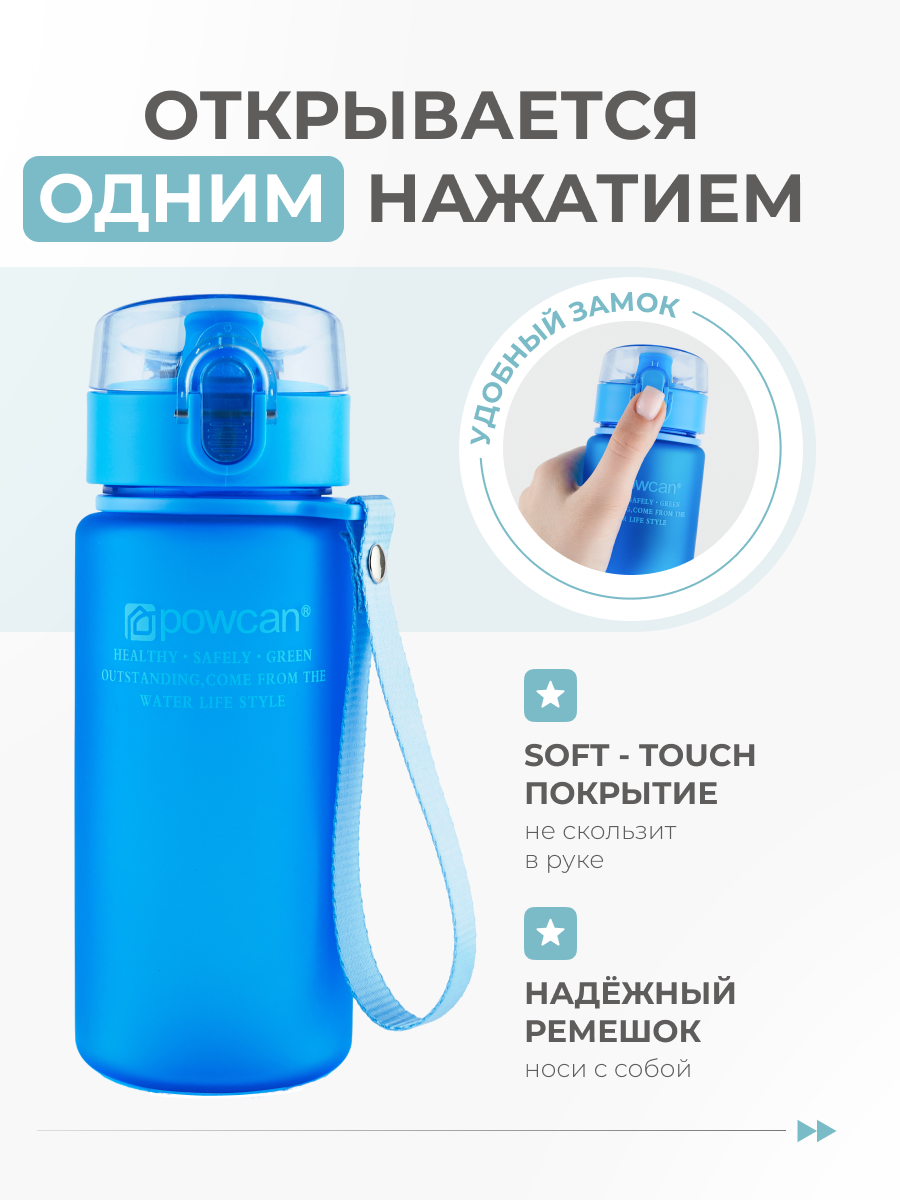 СохранитьБутылка для воды POWCAN - blue 400 мл. матовая интересное:
