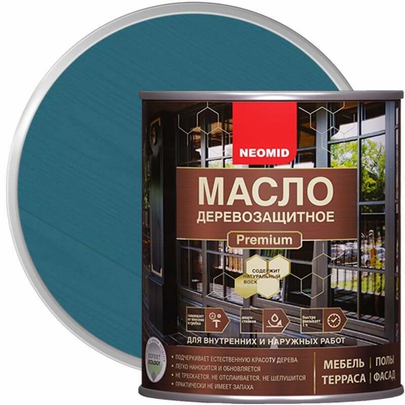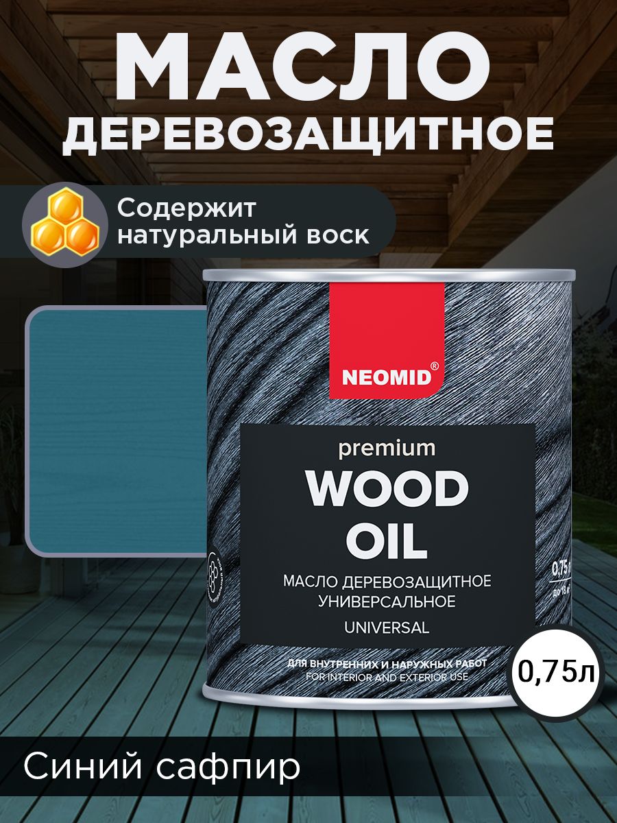 Масло с Натуральным Воском Neomid Premium 0.75л Синий Сапфир Деревозащитное, Износостойкое для Внутренних и Наружных Работ / Неомид.